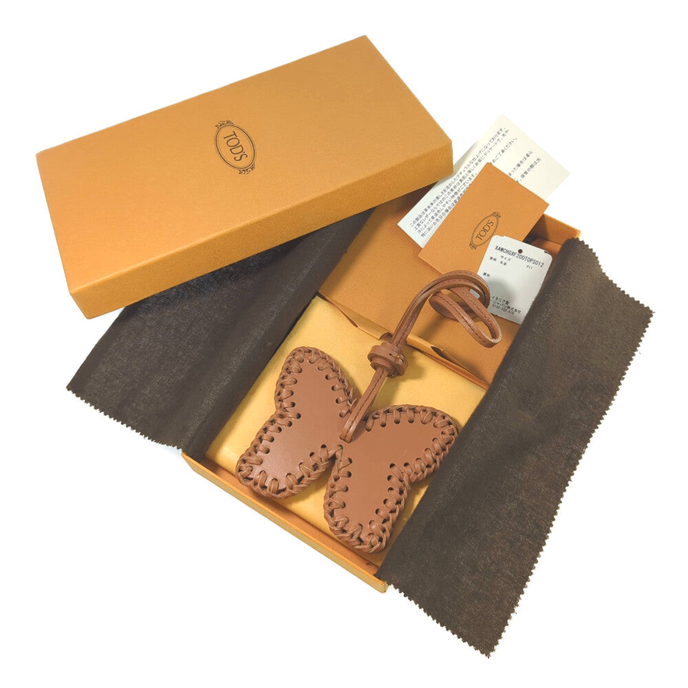 TOD’S トッズ カーフレザー バタフライ バッグチャーム バッグアクセサリー/ブラウン/パピヨン/キーホルダー【♀】【A】【レディース】★■586342【中古】