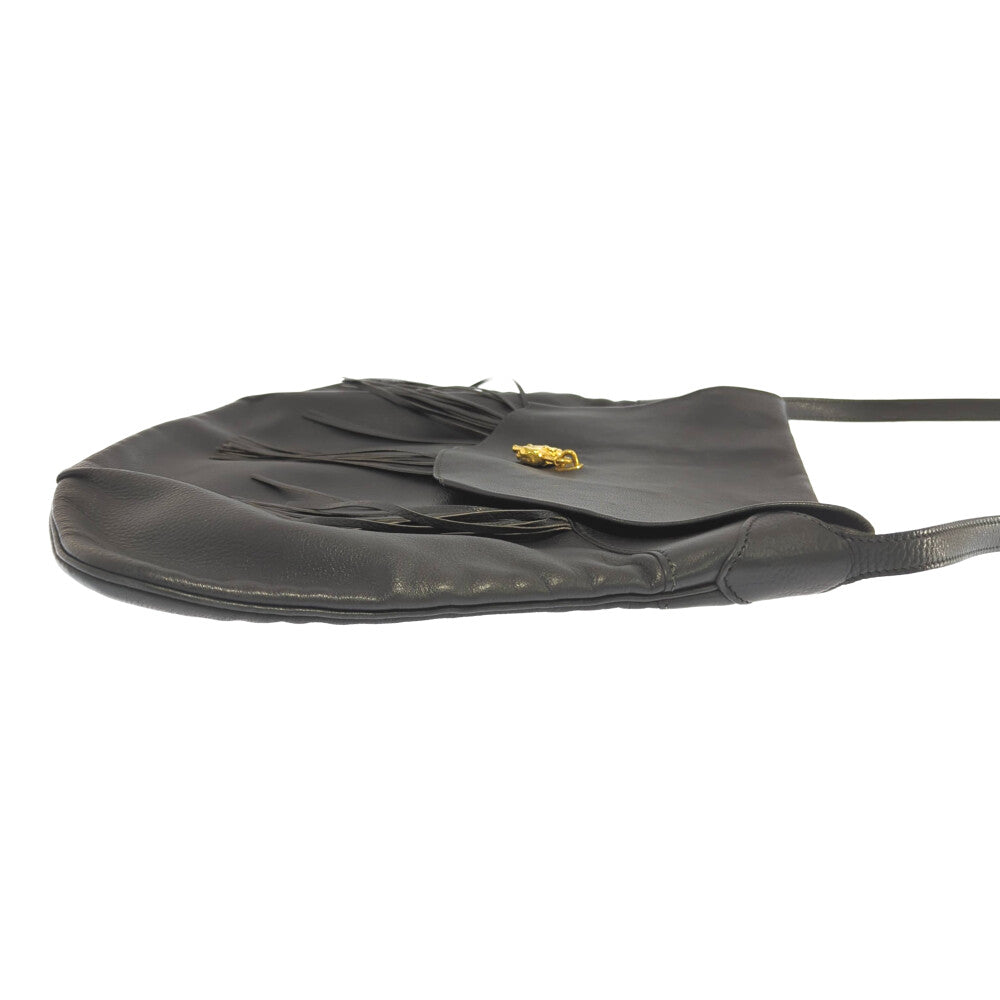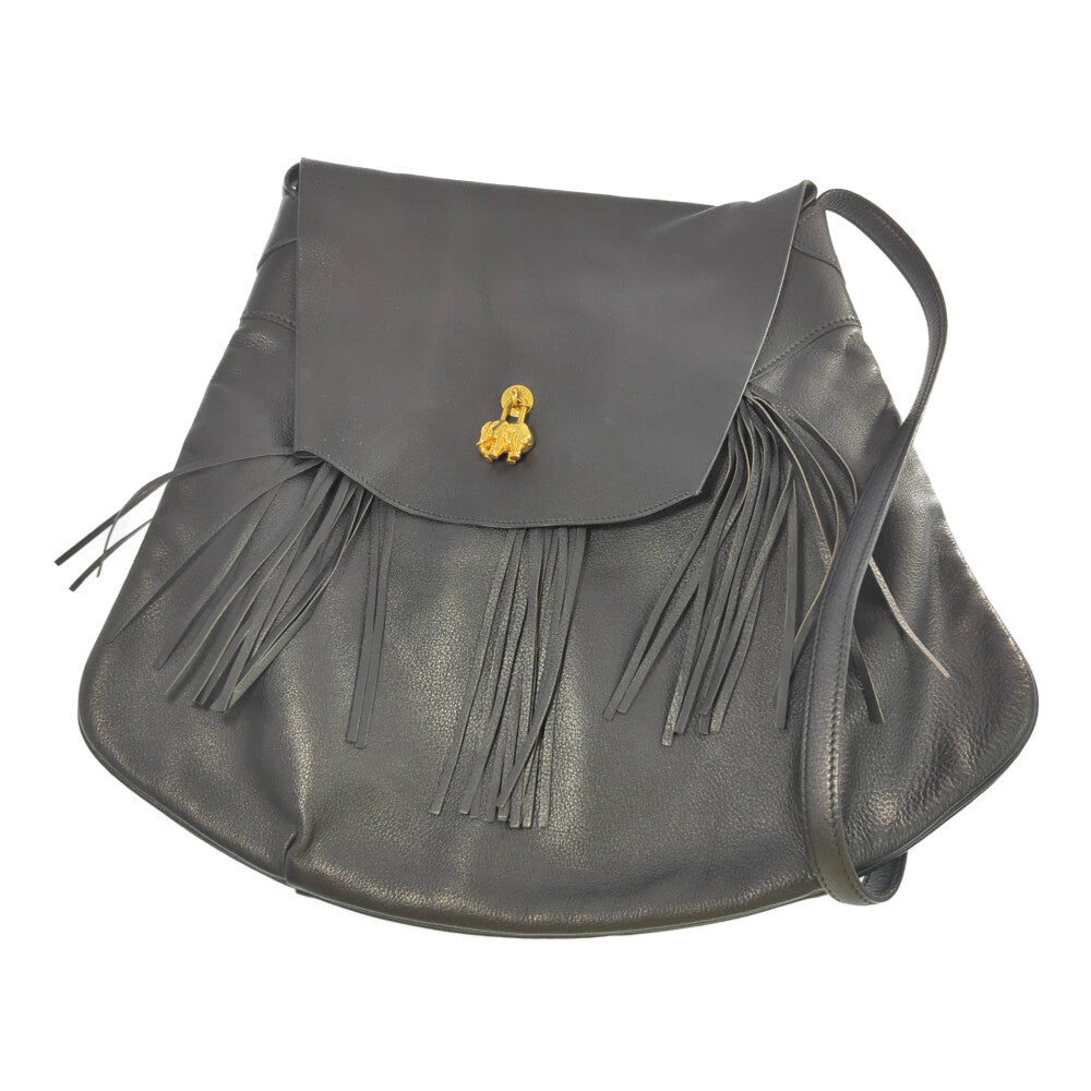 HERMES エルメス ○R刻(1988年)フリンジ アニマル カデナ付 ショルダーバッグ/ブラック/ワンショルダーバッグ/【オールシーズン】【♀】【B】【レディース】★■584146【中古】