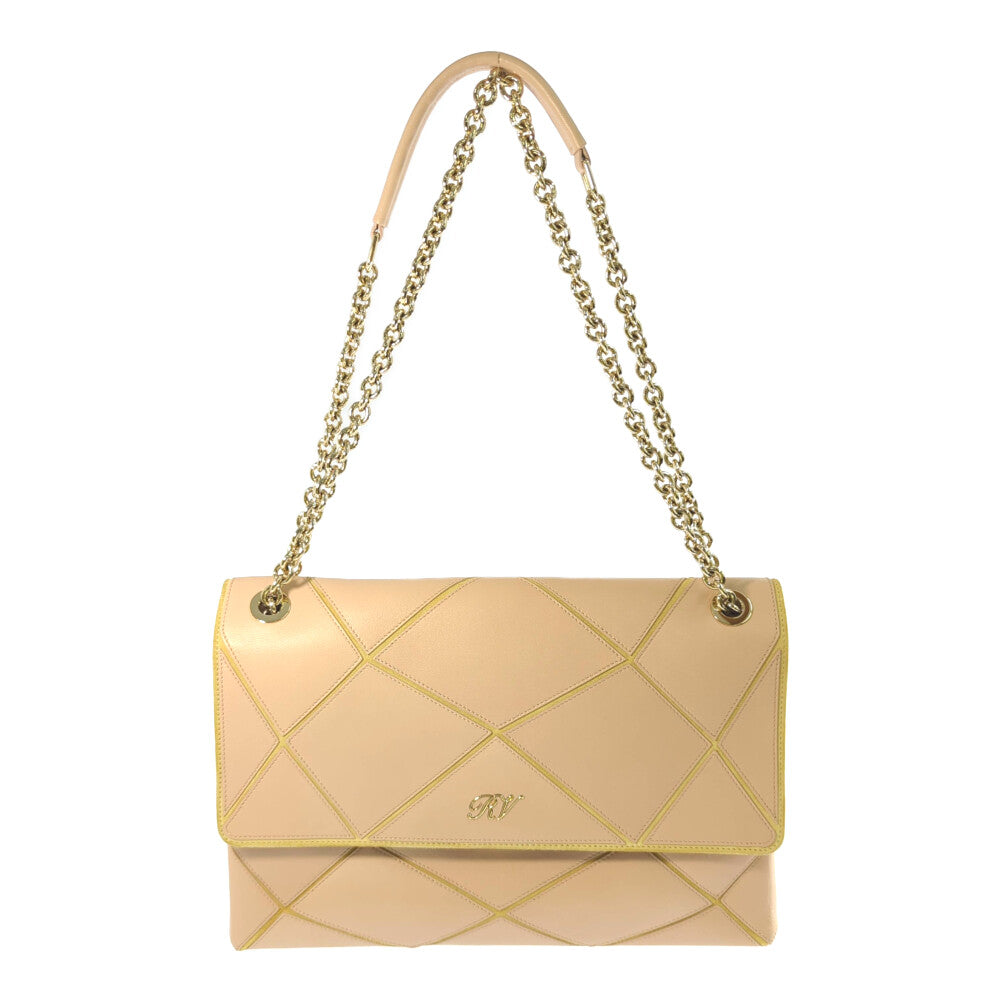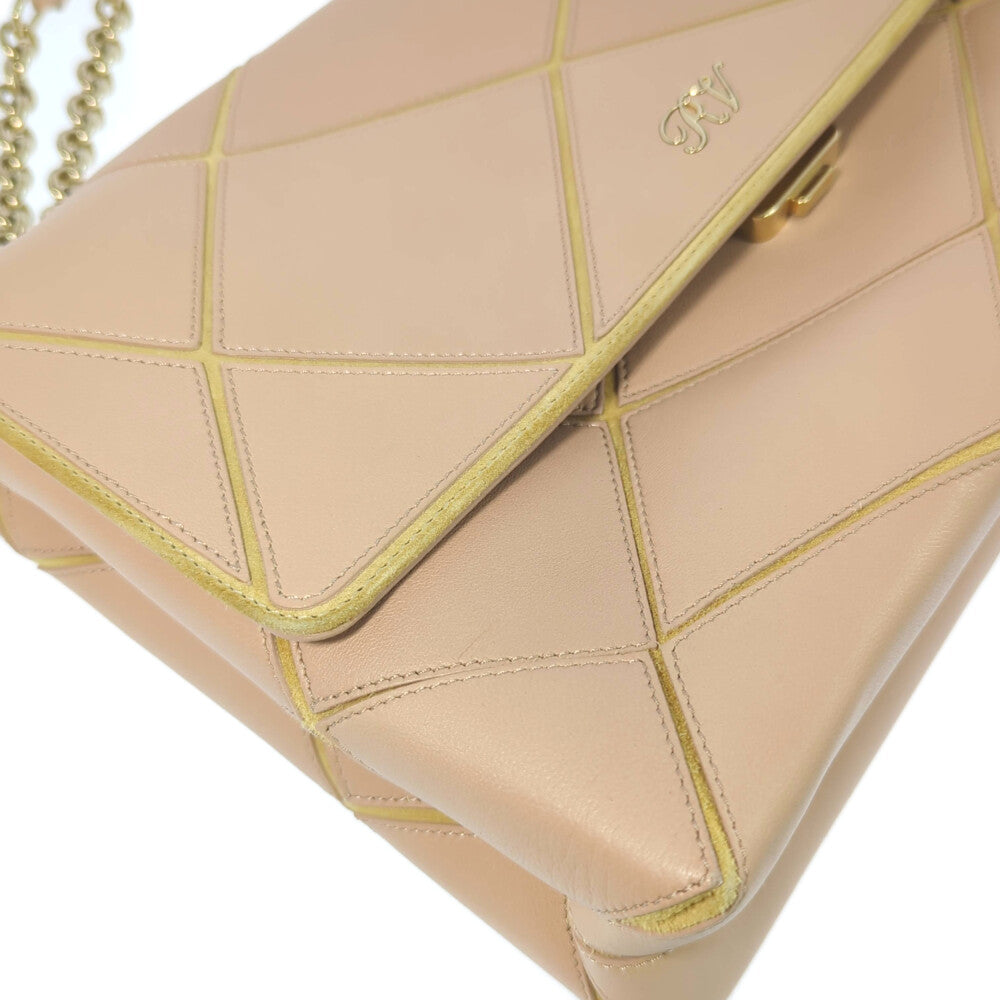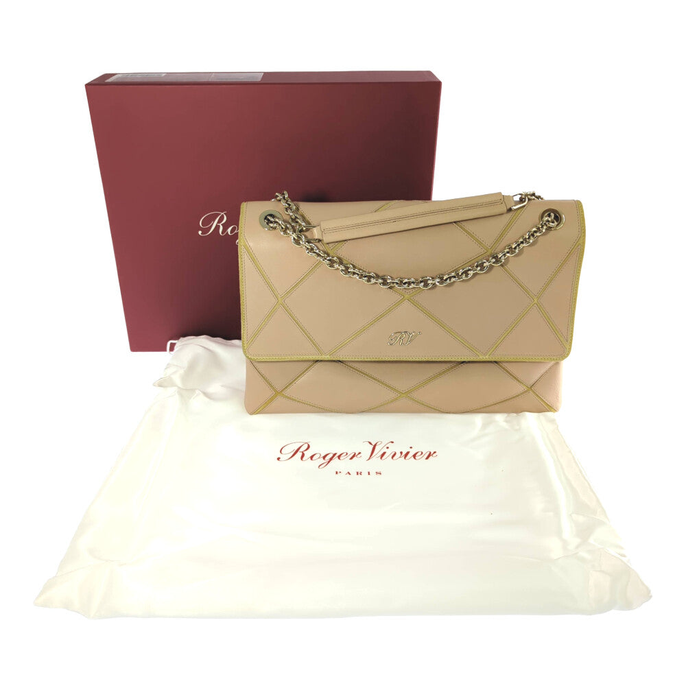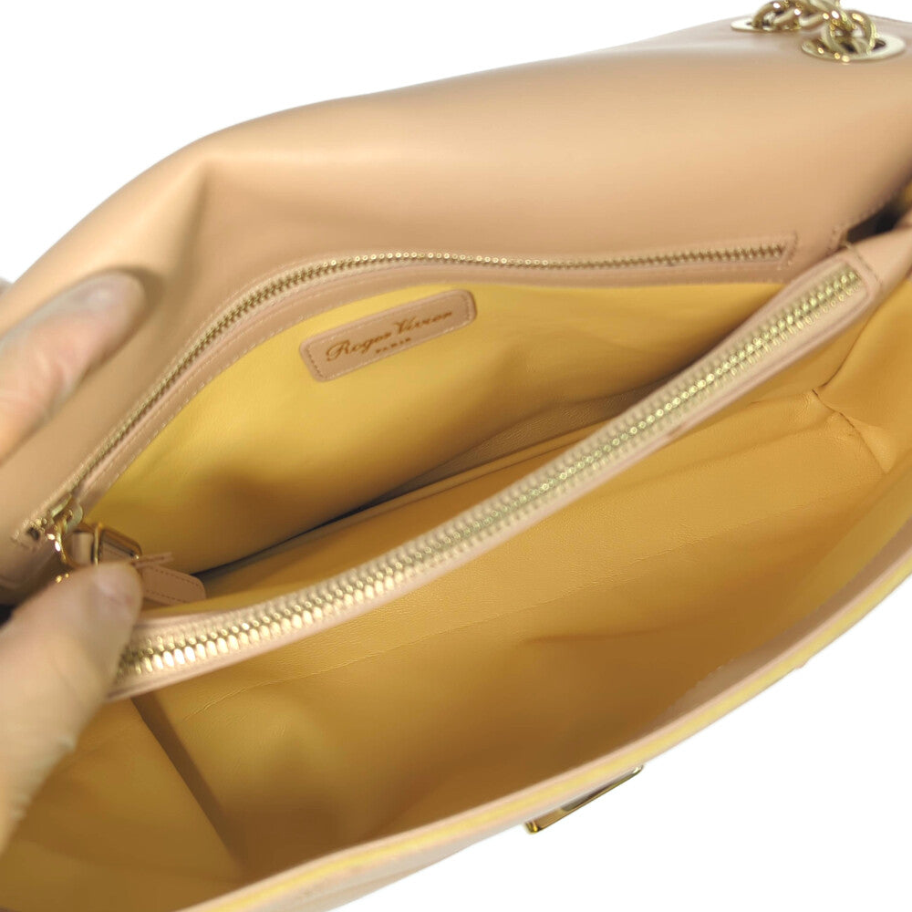 Roger Vivier ロジェヴィヴィエ カーフ ヤギ レザー Wチェーン ハンドバッグ ショルダーバッグ/ピンクベージュ【オールシーズン】【♀】【A】【レディース】★■587235【中古】