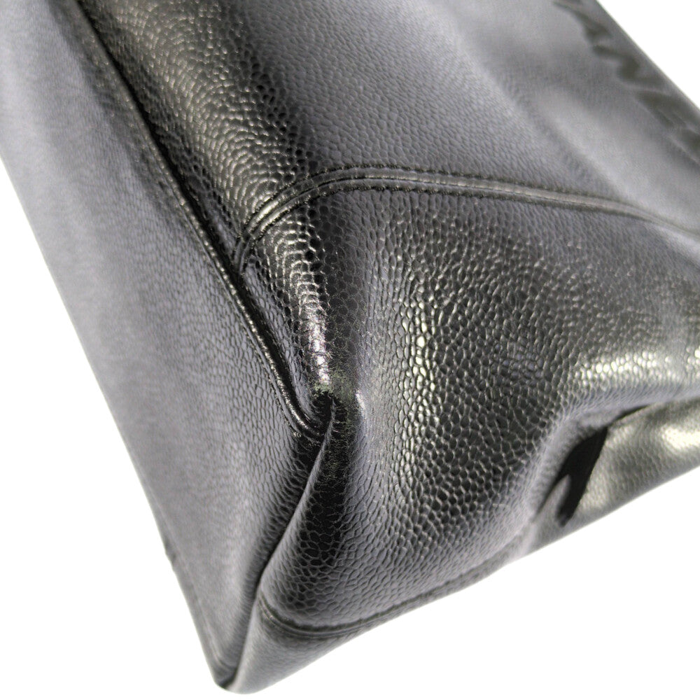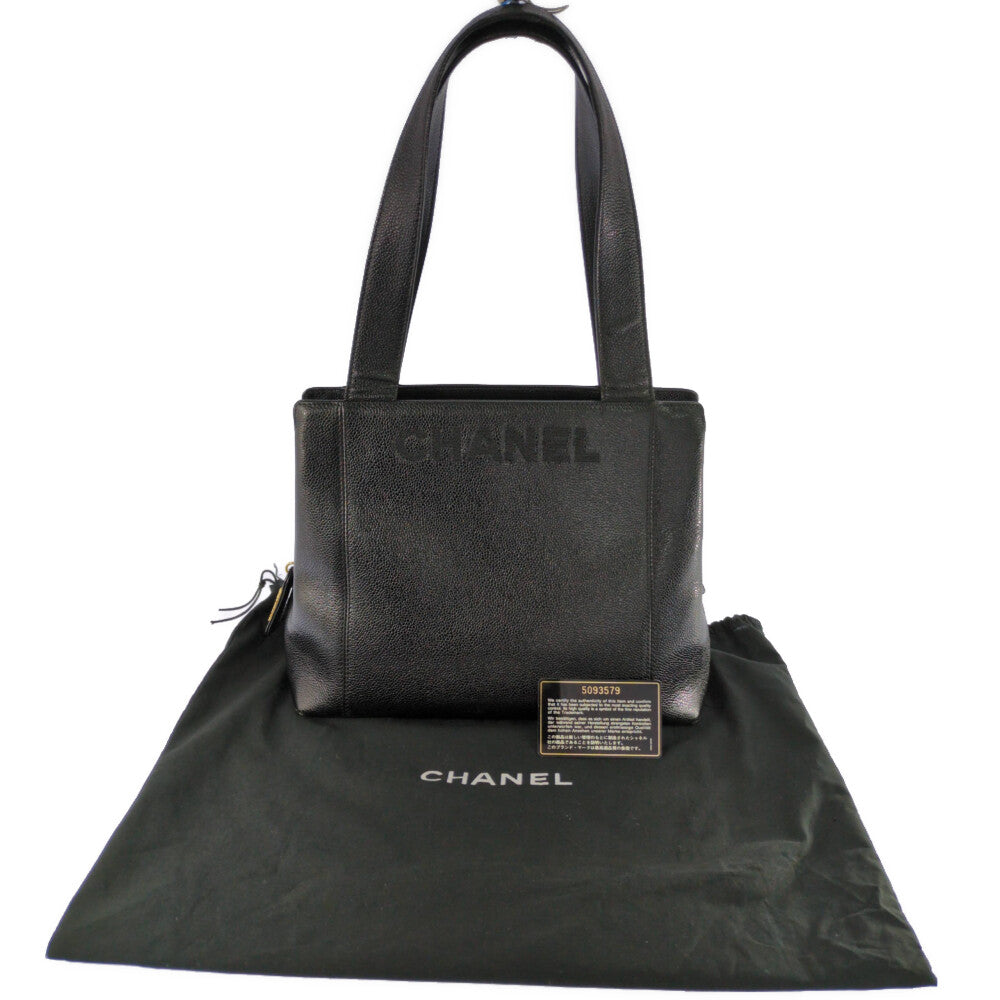 CHANEL シャネル ロゴ刺繍 キャビアスキン ゴールド金具 ハンドバッグ トートバッグ/ブラック/翌日配送可【オールシーズン】【♀】【B】【レディース】★■594261【中古】