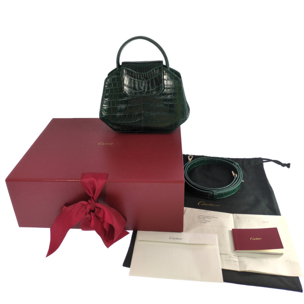 Cartier カルティエ ガーランドドゥカルティエミニ・型押しレザー トップハンドル 2WAYハンドバッグ/グリーン/翌日配送可【オールシーズン】【♀】【A】【レディース】★■550920【中古】