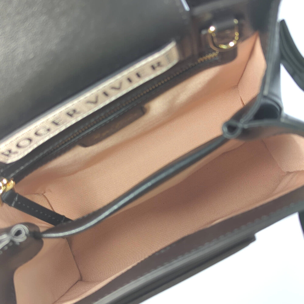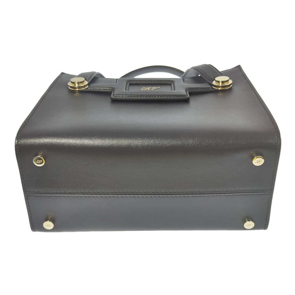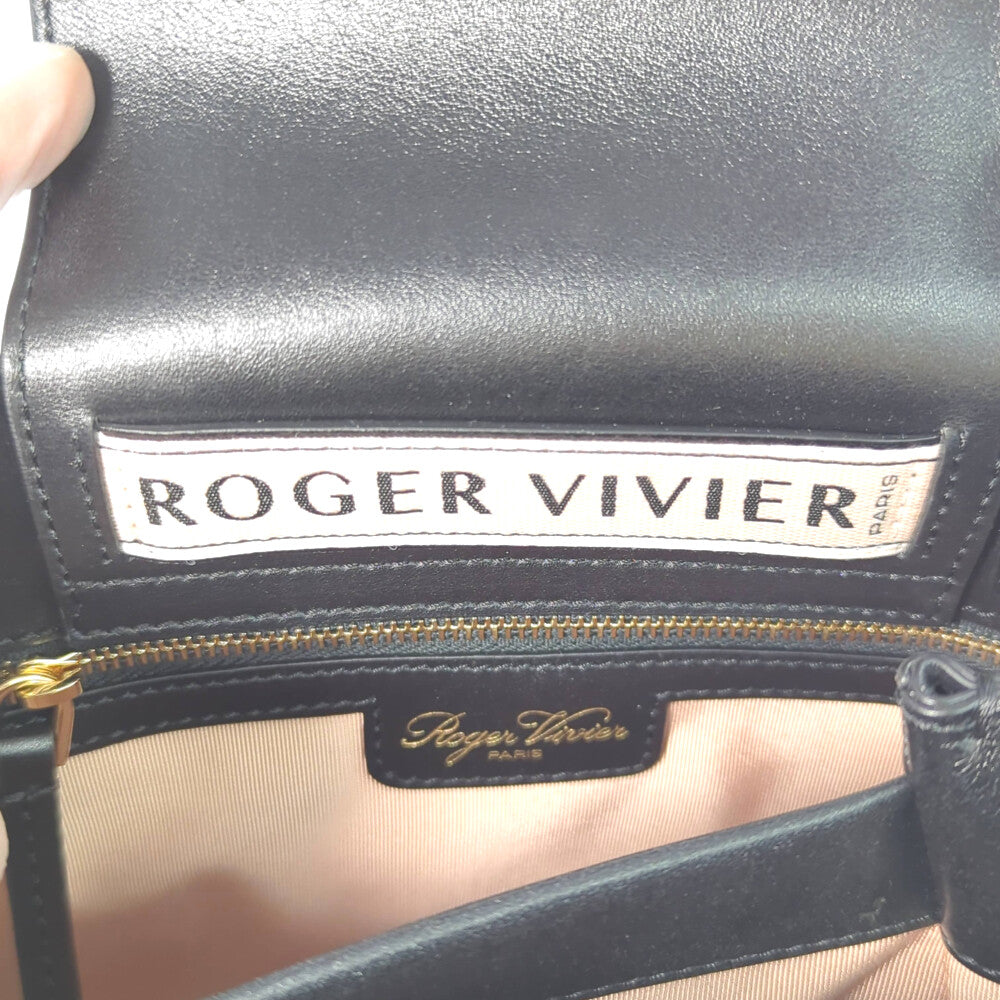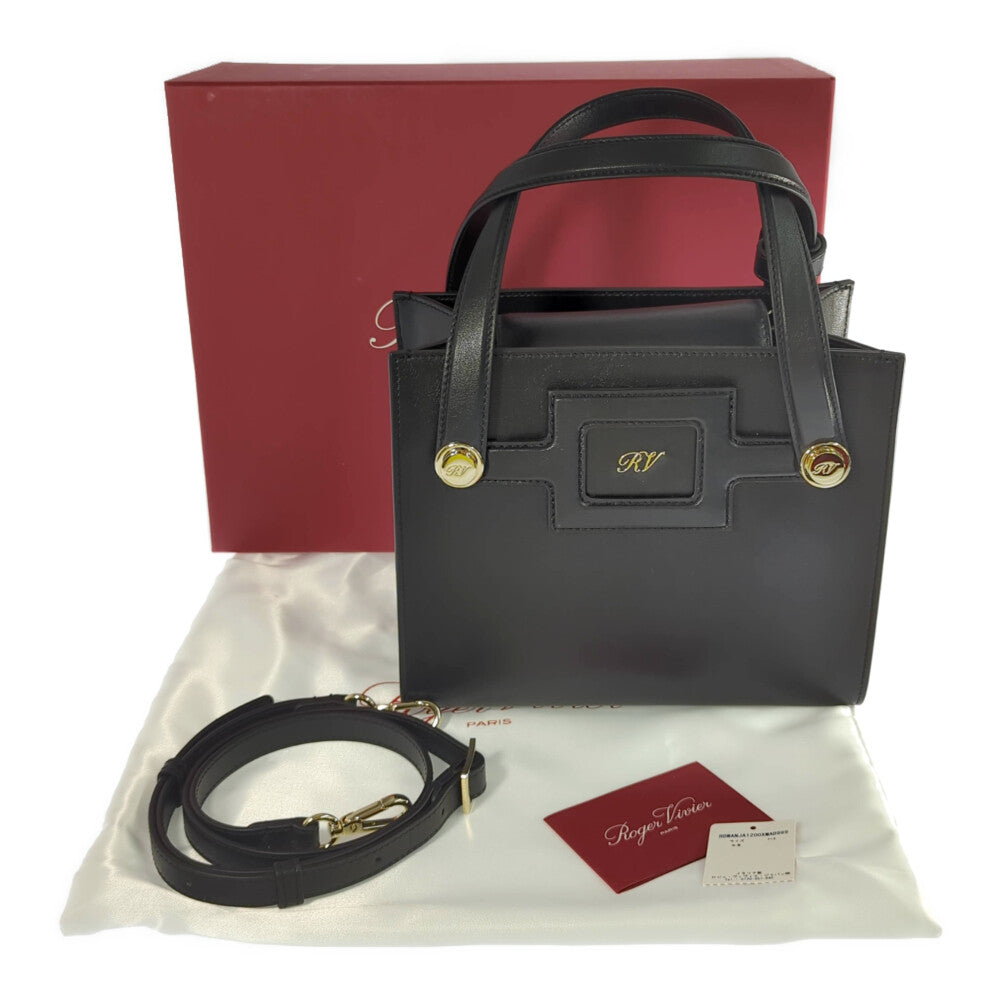 Roger Vivier ロジェヴィヴィエ ロゴプレート カーフレザー ダブルハンドル 2WAY ハンドバッグ ショルダーバッグ/ブラック【オールシーズン】【♀】【A】【レディース】★■587225【中古】