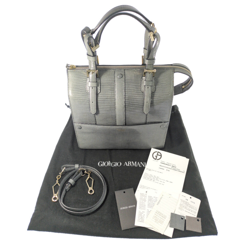GIORGIO ARMANI ジョルジオアルマーニ 2WAYハンド トカゲ型押しバッグ/YGWN25/グリーン/翌日配送可【♀】【S】【レディース】★■595759【中古】