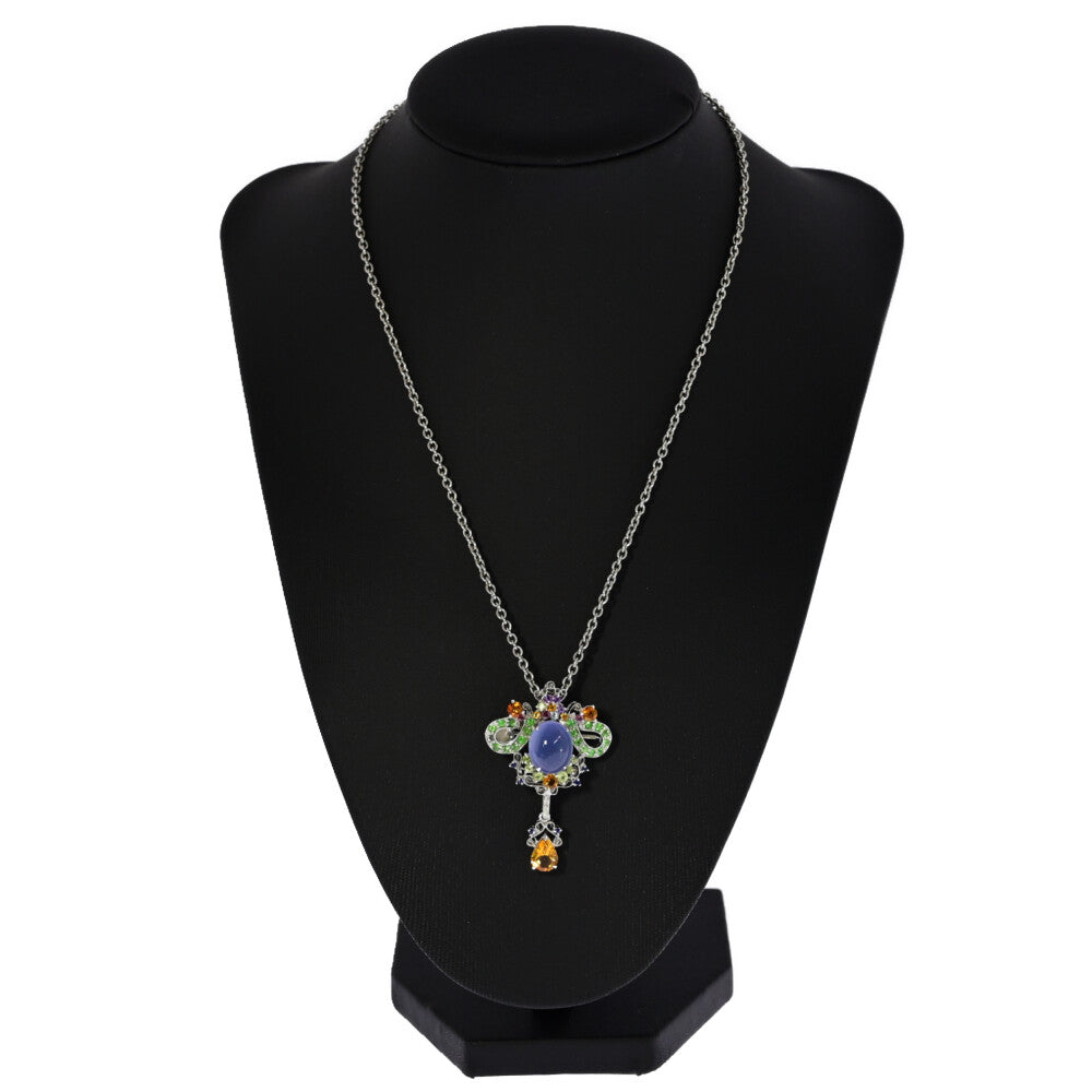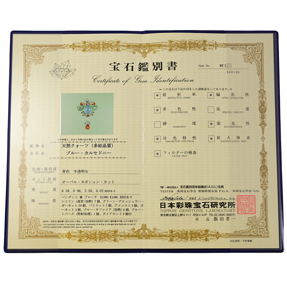 ■素材: K18WG ブルーカルセドニー シトリン グリーングロッシュラーガーネット ペリドット アメシスト ガーネット ブルーサファイア ブルートパーズ ダイヤモンド