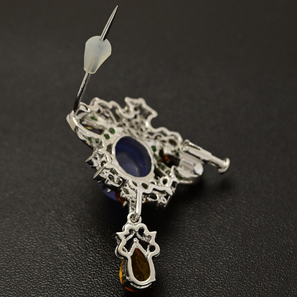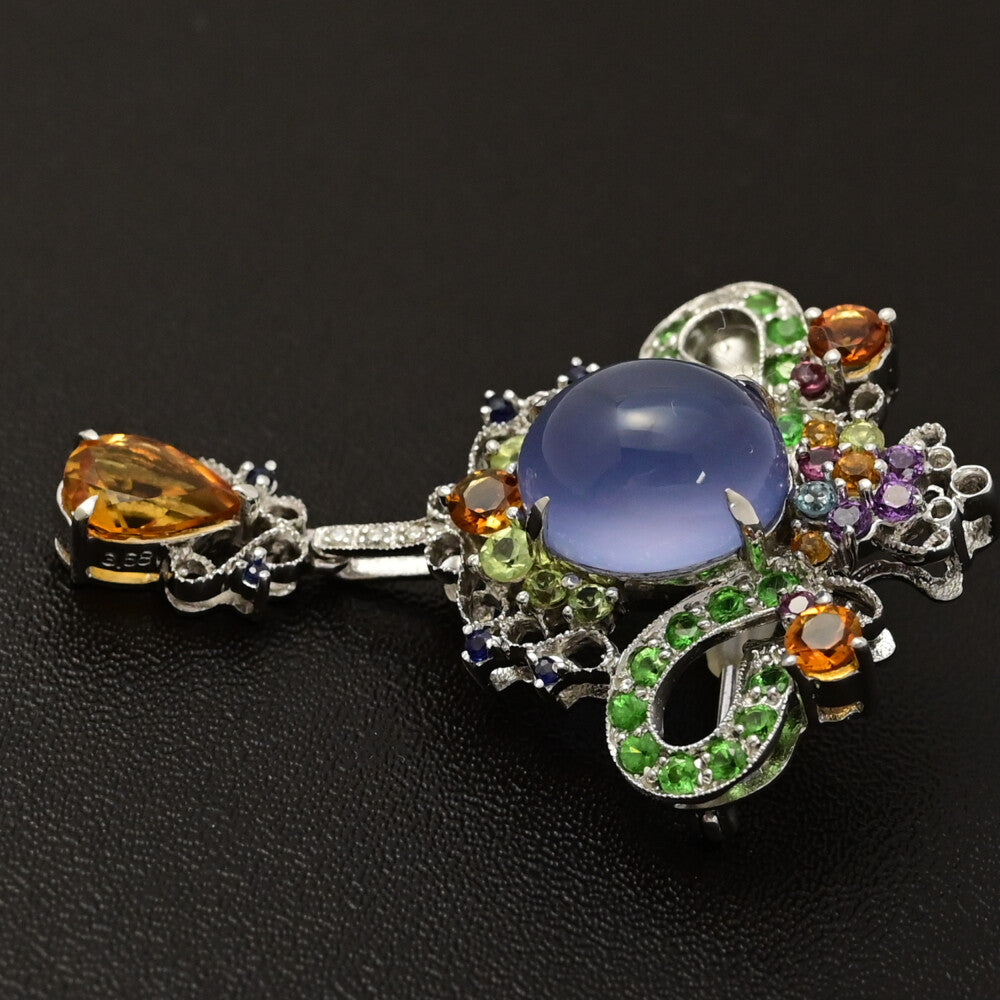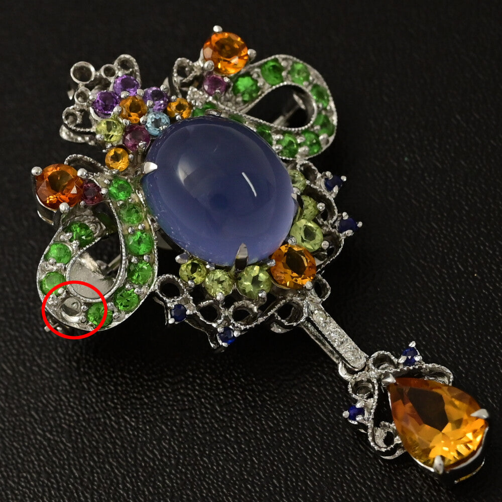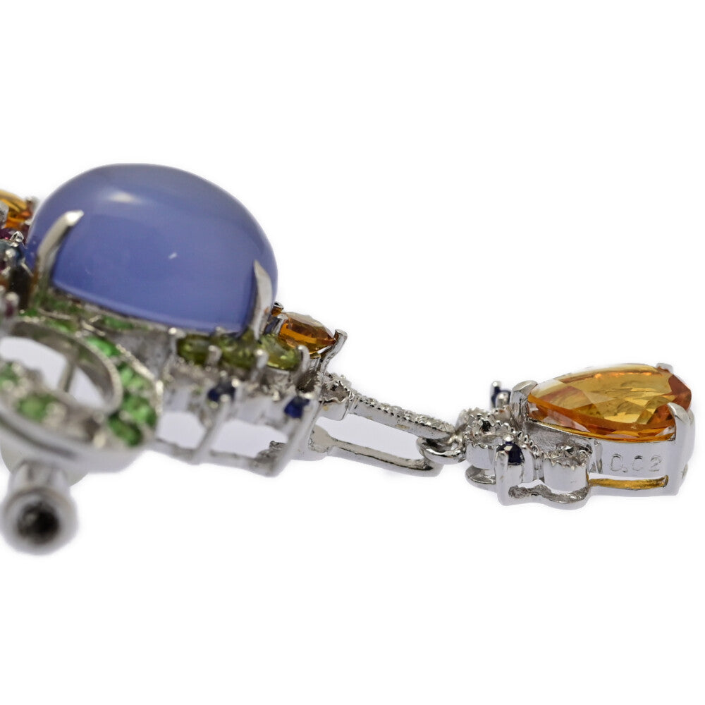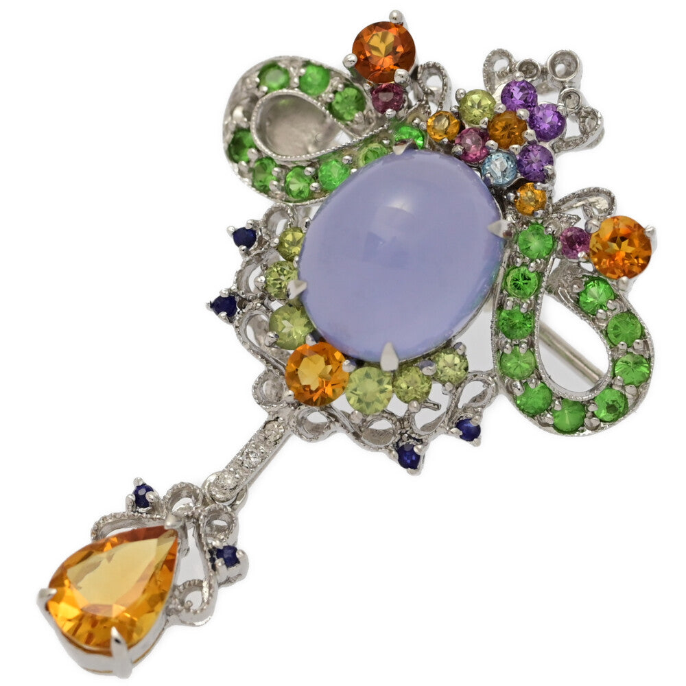 CD6.39ct/FD:4.54ct/マルチストーン・マルチカラー・カルセドニーブローチ・ピンタック/K18WG/750-10.2g/ホワイトゴールド【♀】【S】【レディース】★■594414【中古】