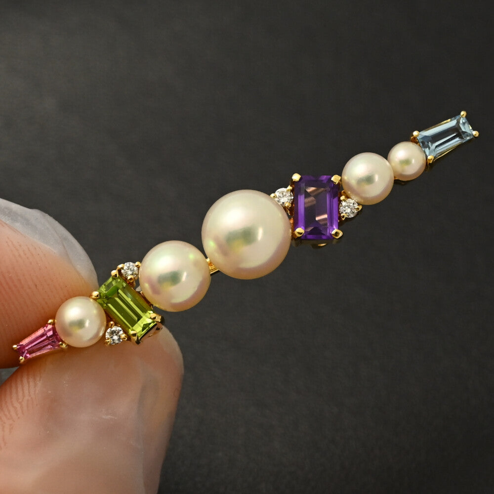 ■素材: K18YG 真珠(パール)ダイヤモンド マルチカラーストーン