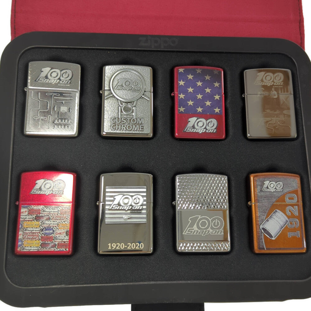 ZIPPO ジッポー スナップオン 100周年限定・ライター 8個セット 喫煙具 ケース付き/シルバー/プレゼント/記念日/コレクション【♂】【A】【メンズ】★■592946【中古】