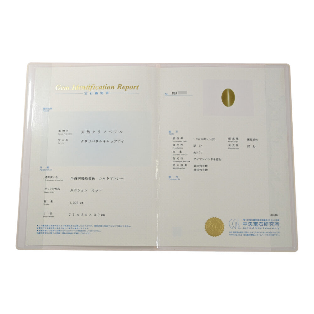 CH1.222ct/ジュエリールース・クリソベリルルース・シャトヤンシー・キャッツアイ/Loose/ルース/半透明褐緑黄色 翌日配送可【S】【メンズ・レディース】★■592205【中古】
