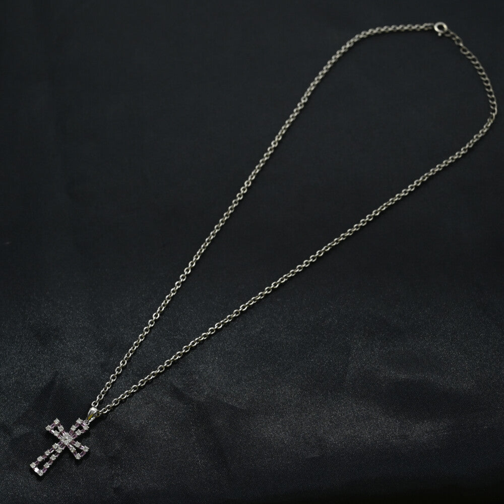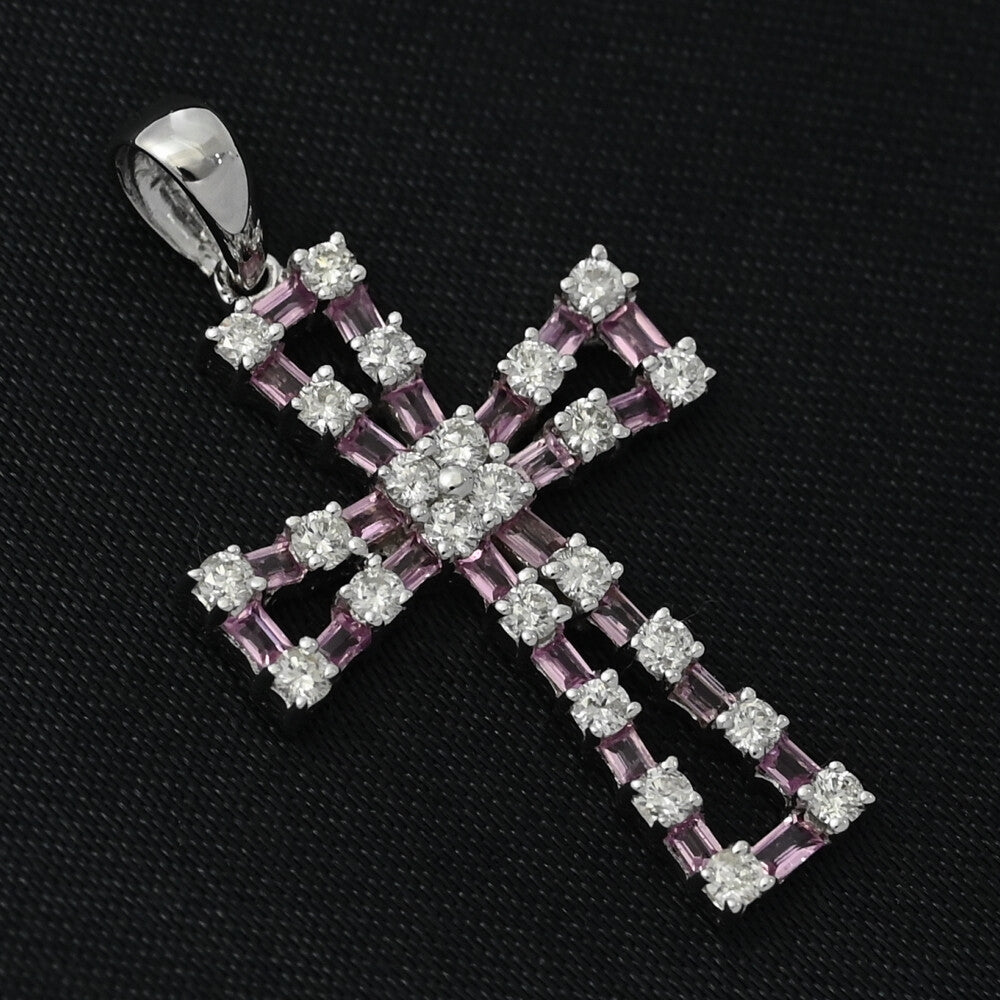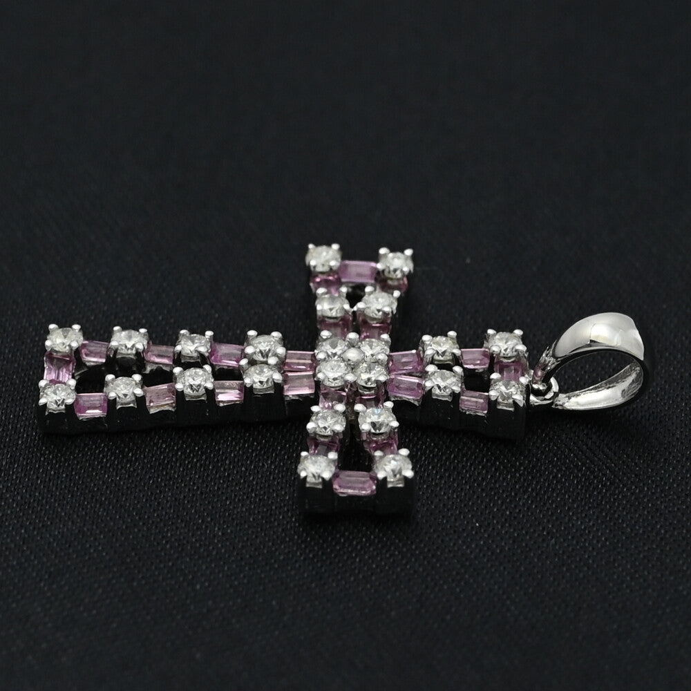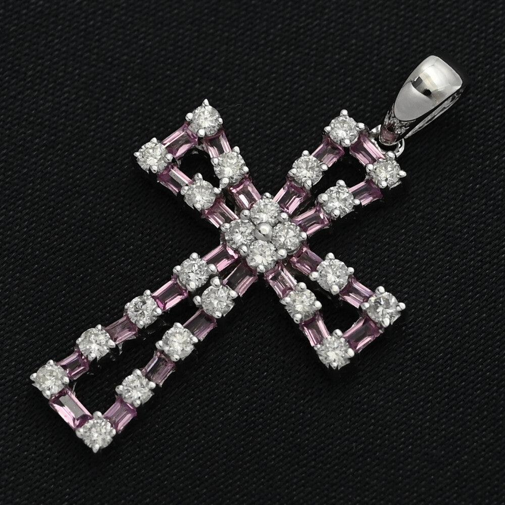 0.46ct/FD:0.53ct/クロスモチーフ・ダイヤモンド・ピンクサファイア ペンダントトップ/K18WG/750-2.5g/ホワイトゴールド【♀】【S】【レディース】★■589509【中古】
