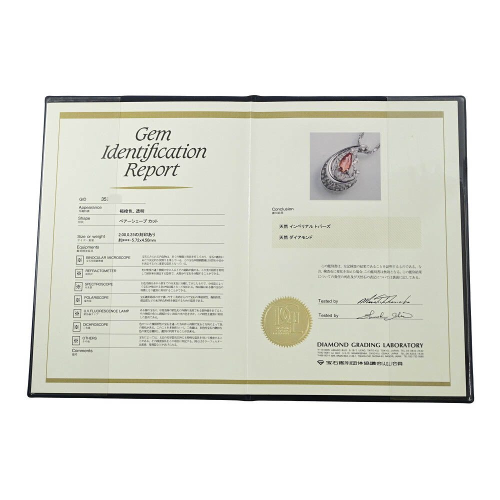 2ct/FD:0.25ct/インペリアルトパーズ・ダイヤモンド ネックレス・ペンダント/Pt900-7.2g/プラチナ/プレゼント/記念日【♀】【N】【レディース】★■555778【中古】