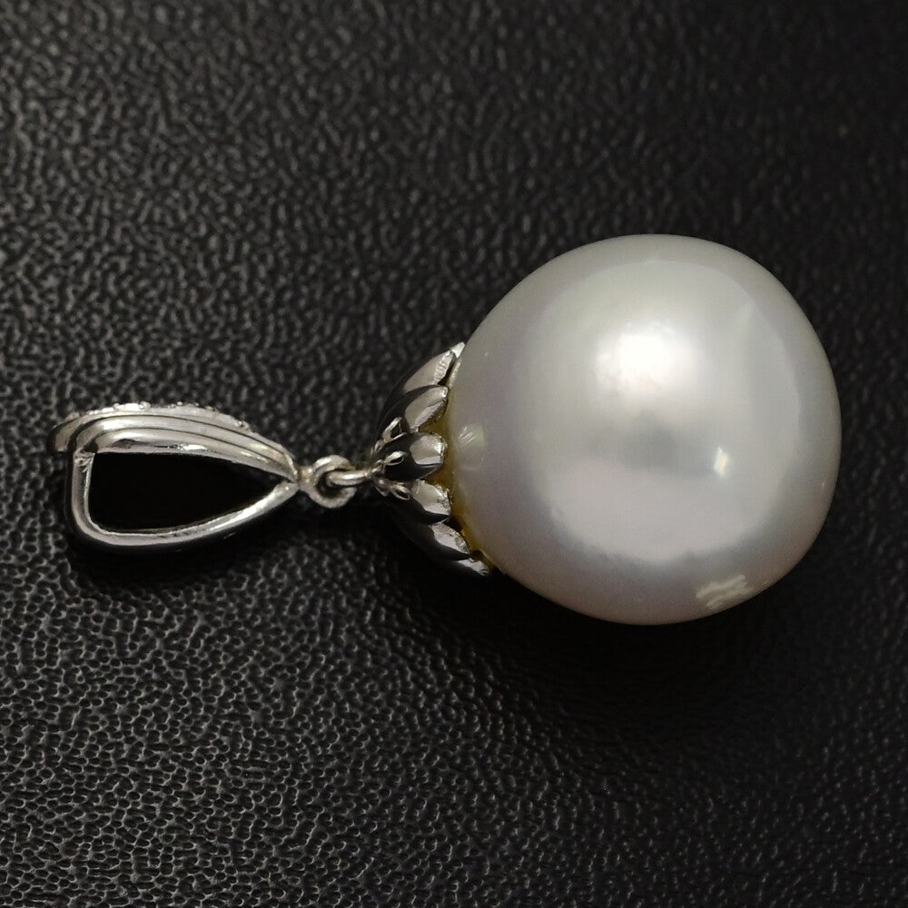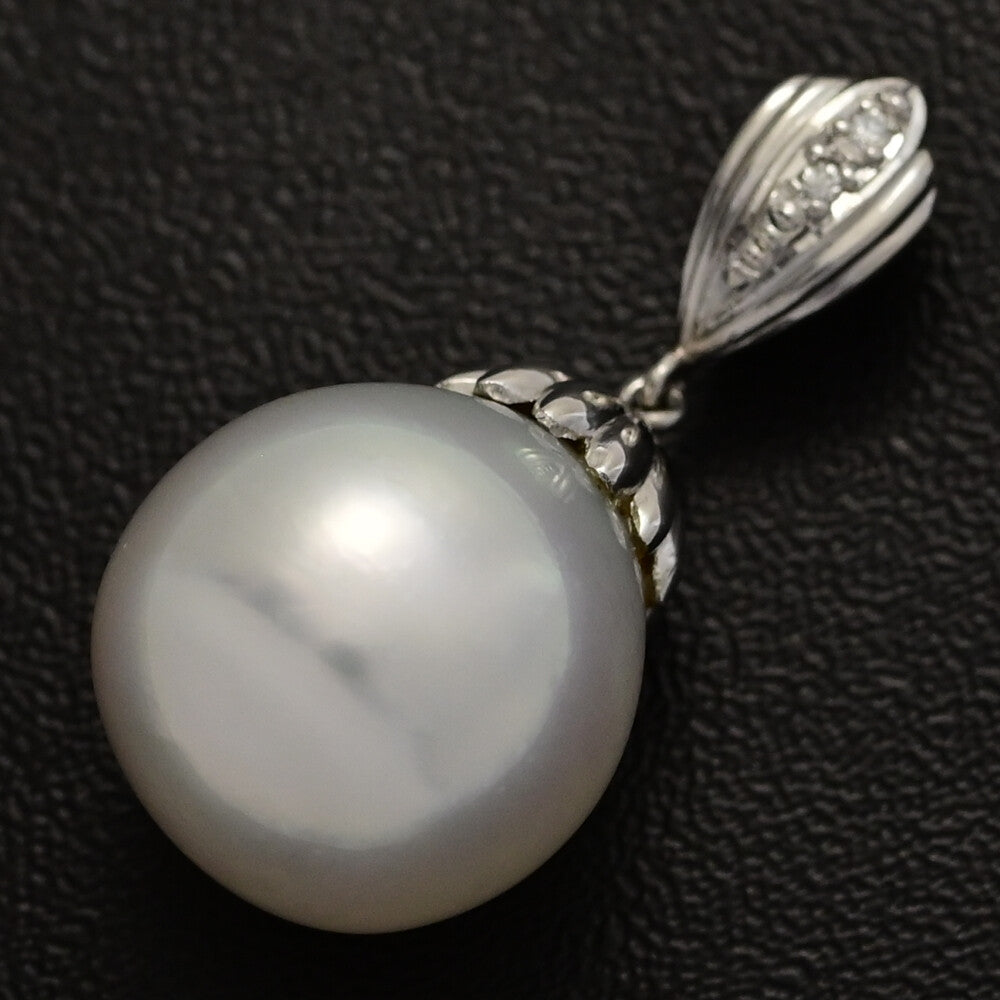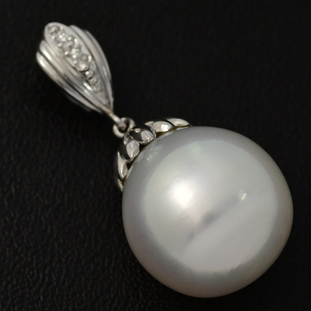 0.02ct/Φ14.5-15.5mm/白蝶真珠/シロチョウ/サウスシーパール・ダイヤモンドペンダントトップ/Pt900-6.6g/プラチナ/プレゼント【♀】【S】【レディース】★■593909【中古】