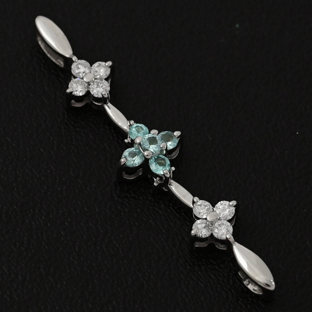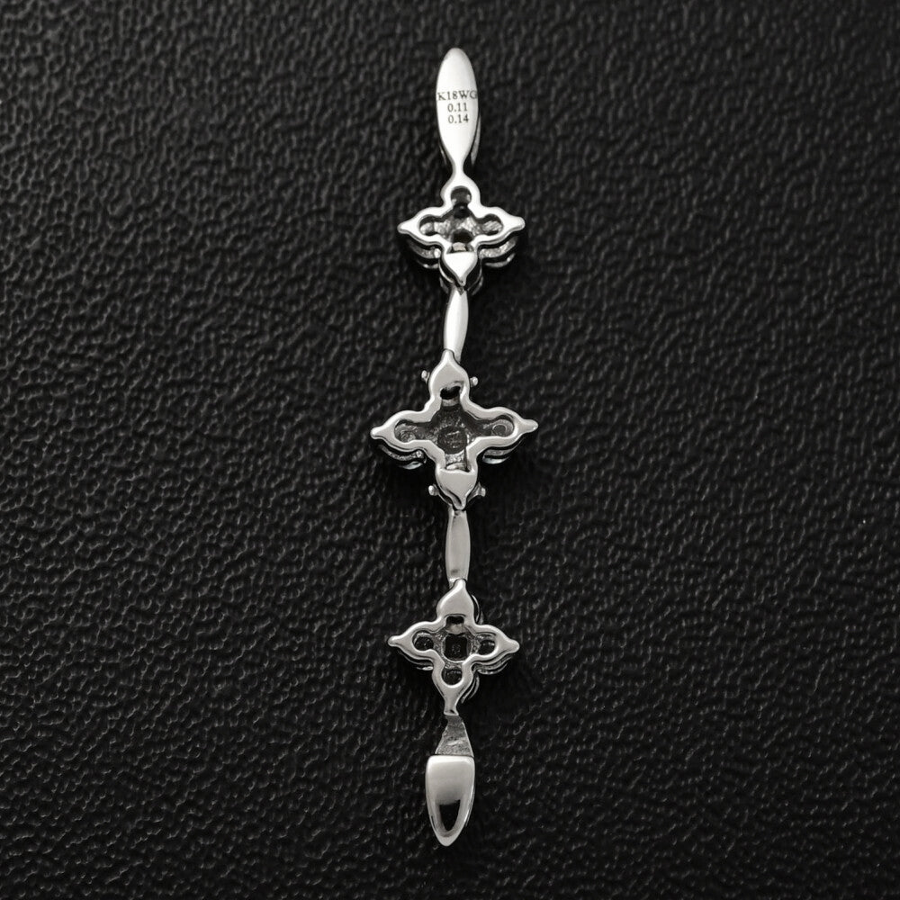 0.11ct/FD:0.14ct/フラワーモチーフ・3連/三連・ダイヤモンド・ダイヤモンドペンダントトップ/K18WG/750-1.4g/ホワイトゴールド 【♀】【S】【レディース】★■591714【中古】