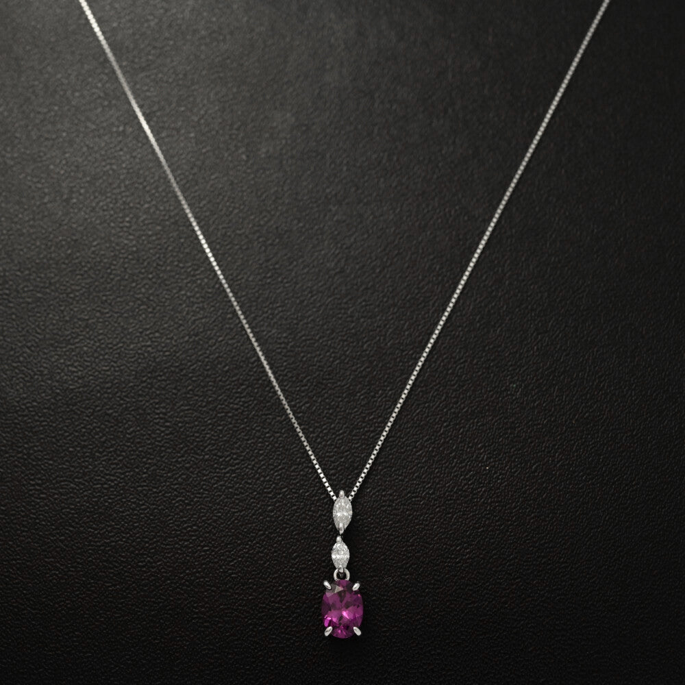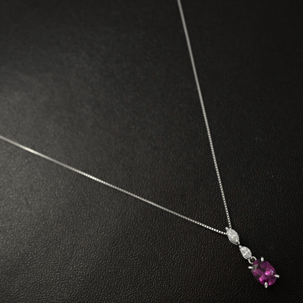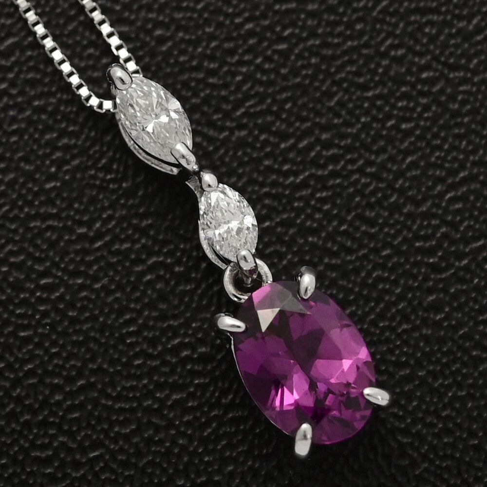 AM0.92ct/FD:0.18ct/2月 誕生石 1P・アメシスト(アメジスト)・ダイヤモンドネックレス・ペンダント/Pt900-Pt850-2.8g【S】【メンズ・レディース】★■595436【中古】