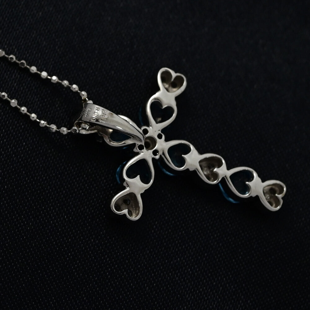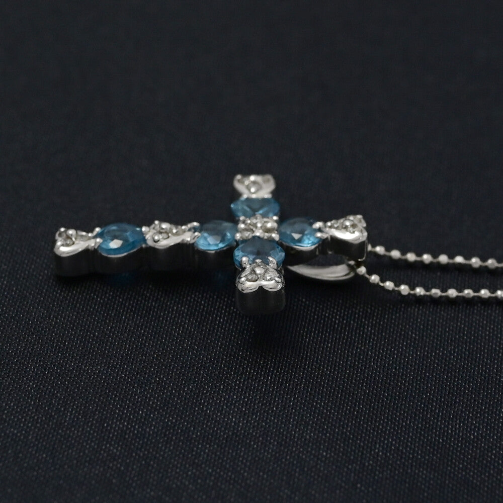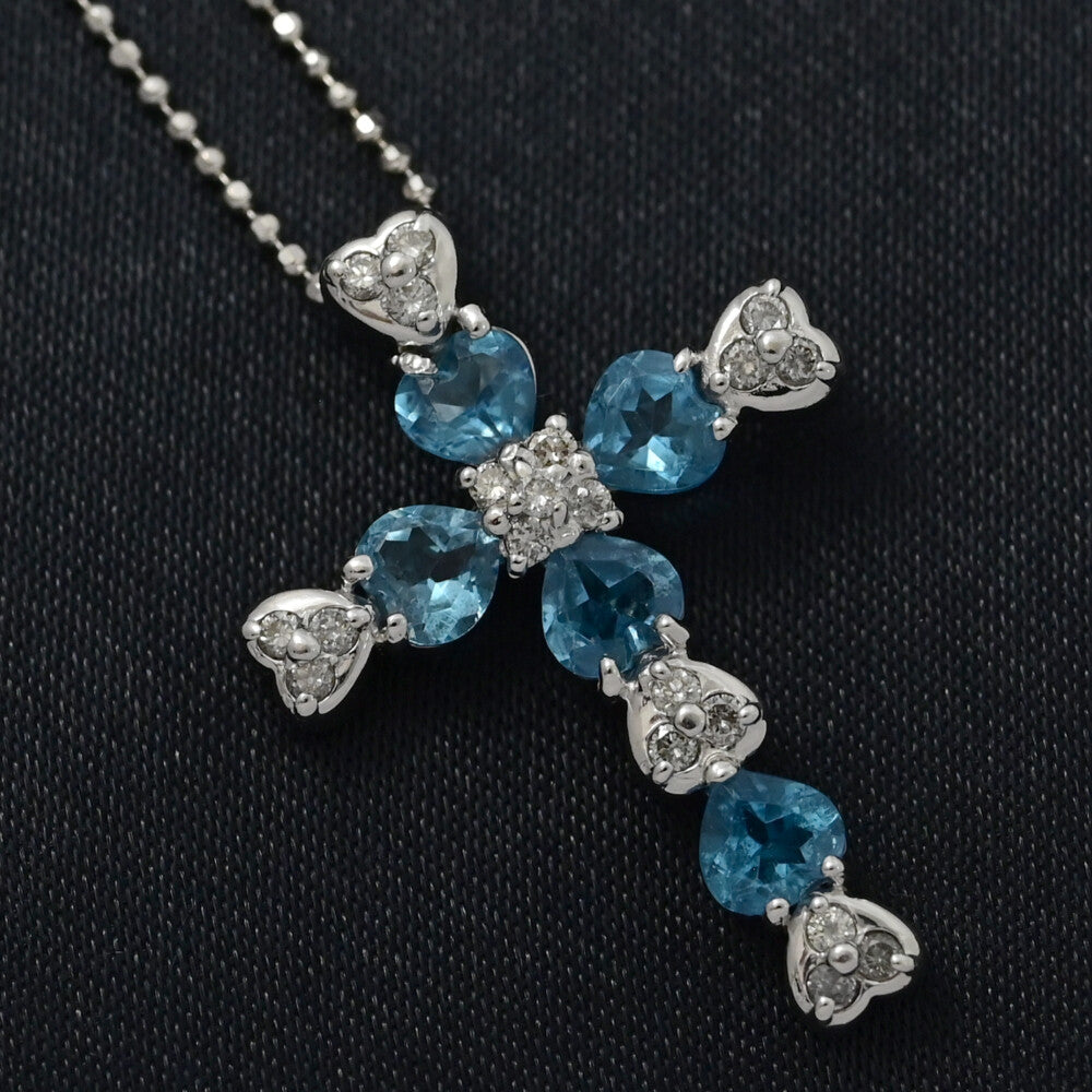 BT1.32ct/FD:0.18ct/クロスモチーフ・11月 誕生石・ブルートパーズ・ダイヤモンドネックレス・ペンダント/K18WG/750-4.6g【♀】【S】【レディース】★■590791【中古】