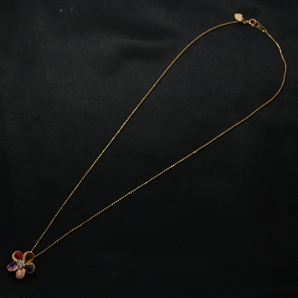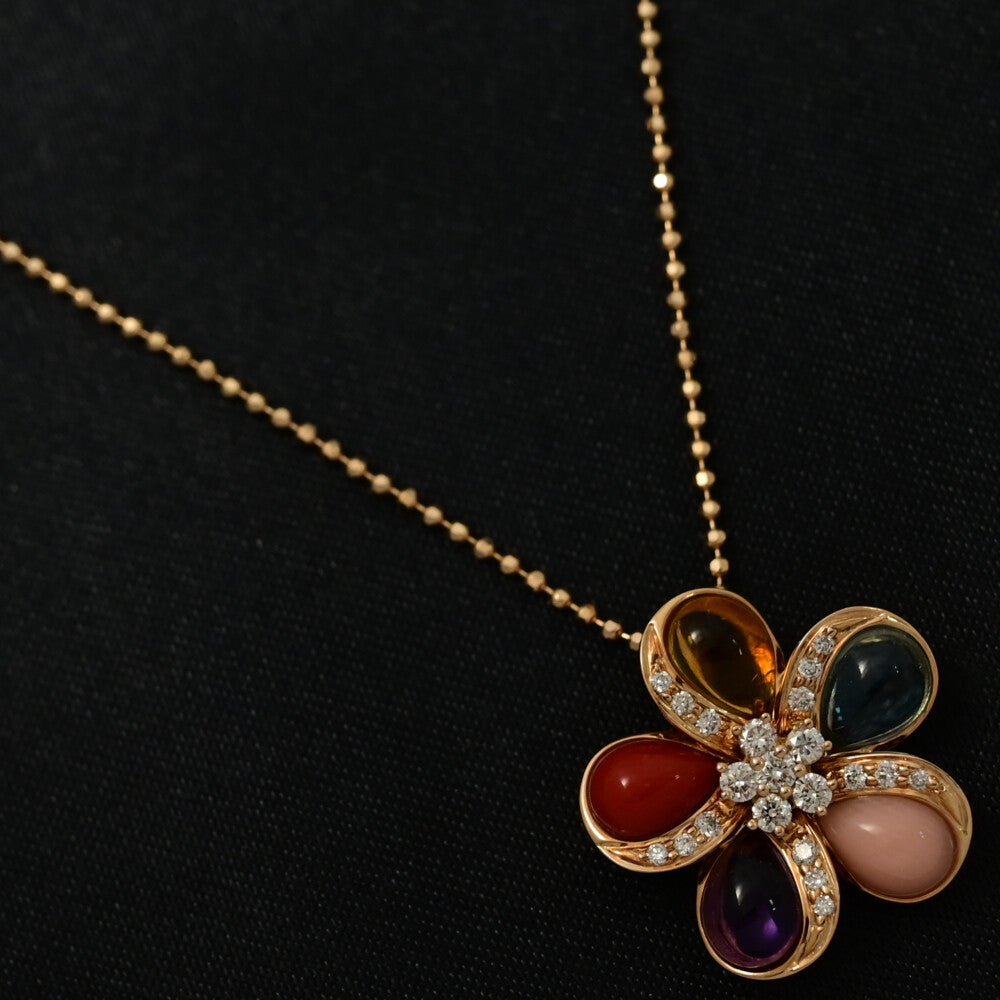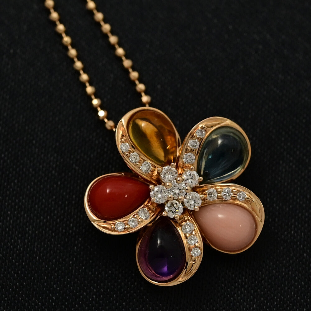 FD:0.16ct/マルチカラー・フラワーモチーフ・マルチストーン・ダイヤモンドネックレス・ペンダント/K18PG/750-4.7g/翌日配送可【♀】【N】【レディース】★■590988【中古】