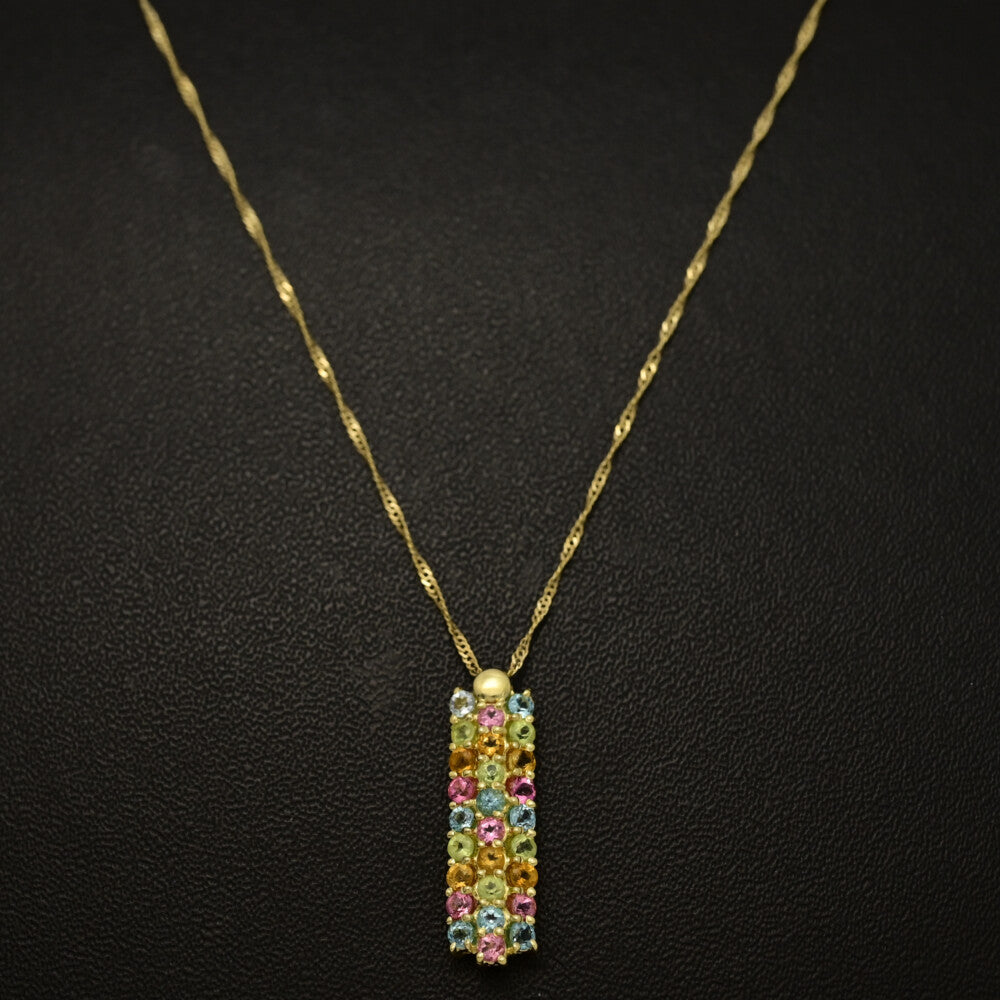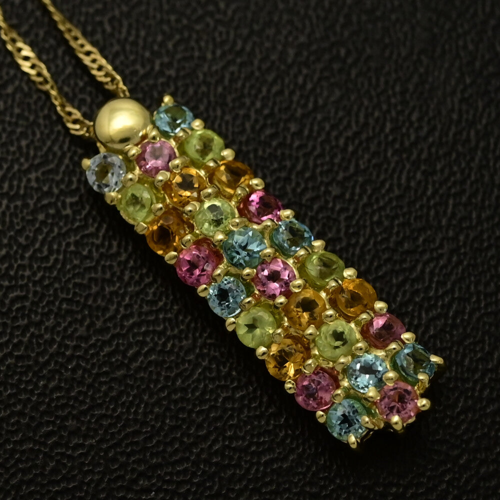 マルチカラー 27P・マルチストーンネックレス・ペンダント/K18YG/750-3.3g/イエローゴールド 翌日配送可【♀】【N】【レディース】★■591675【中古】