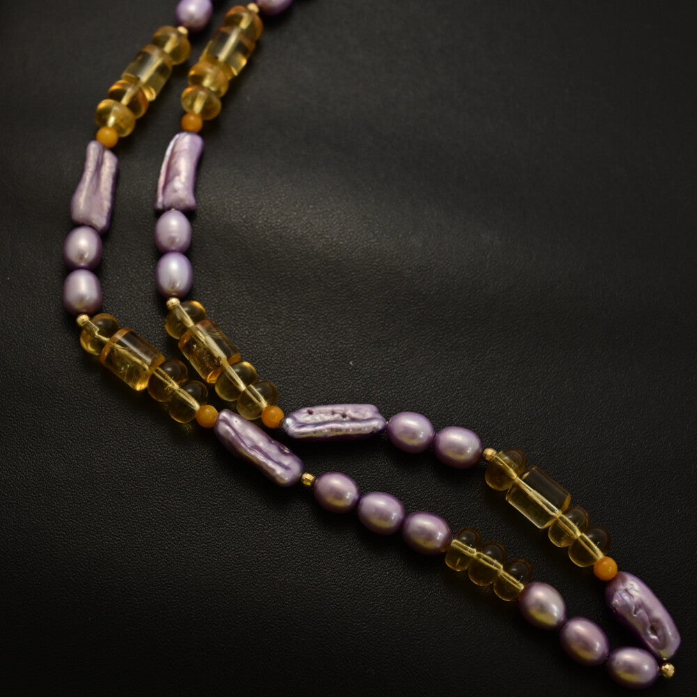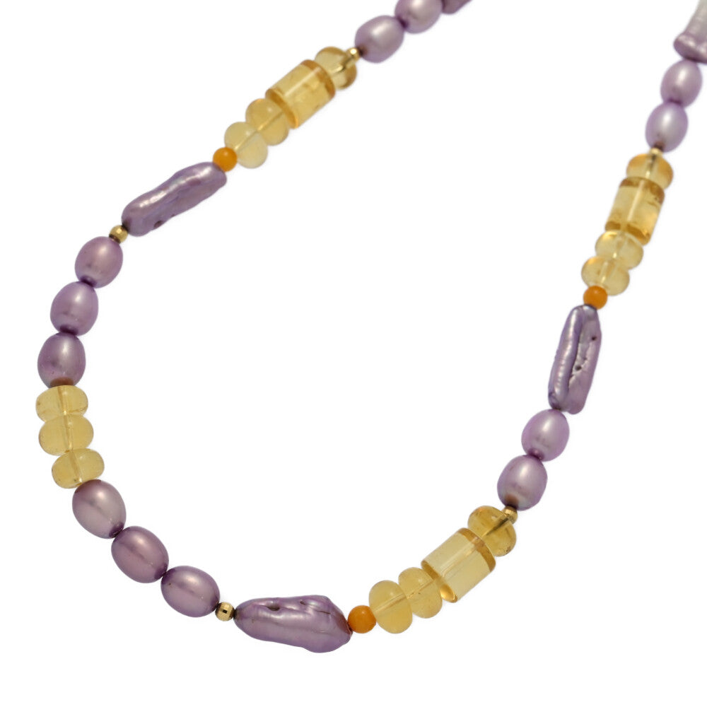 イケチョウ貝/淡水パール/カルセドニーネックレス・ペンダント/合金/メッキ-61.4g/バロック/マルチカラー 翌日配送可【♀】【B】【レディース】★■592675【中古】