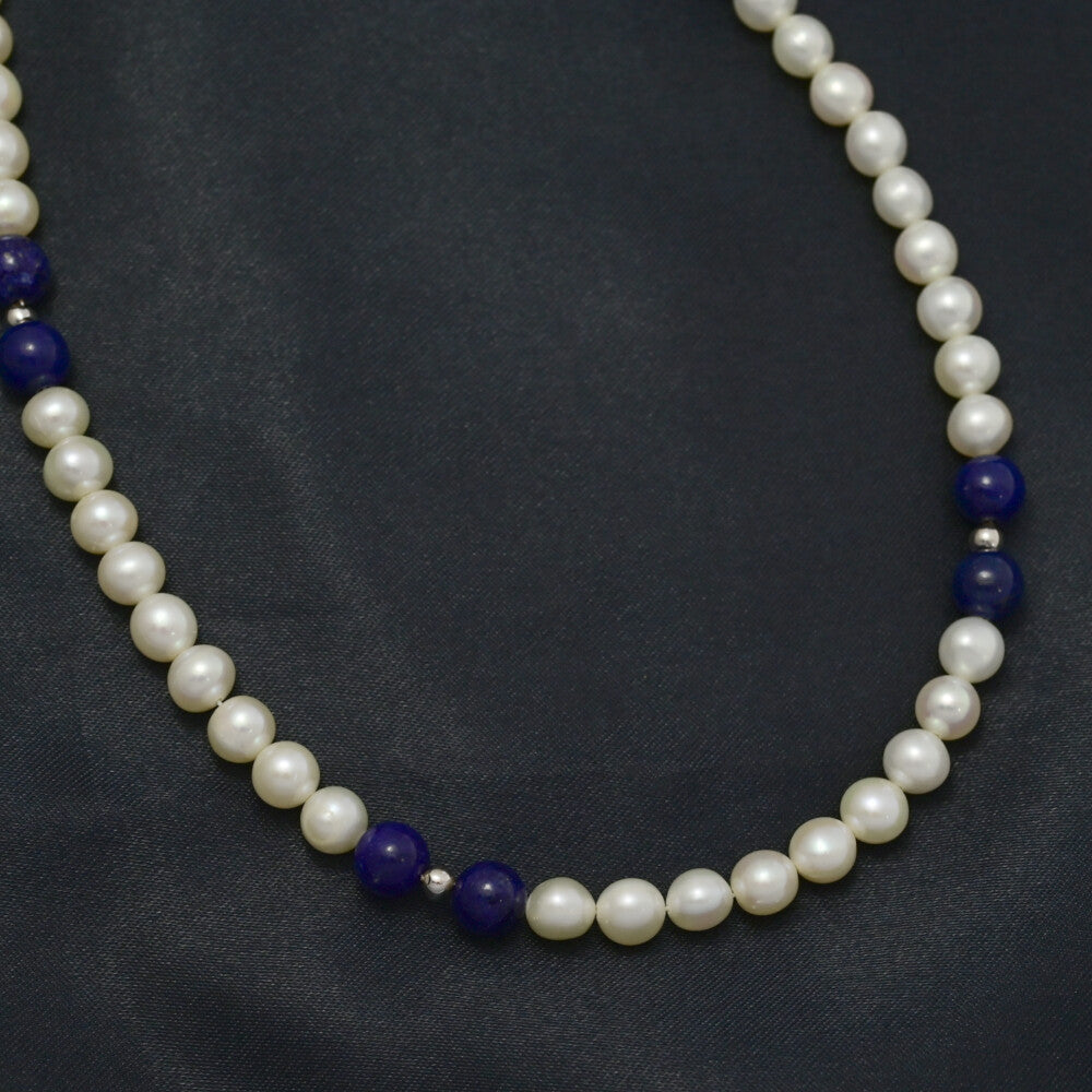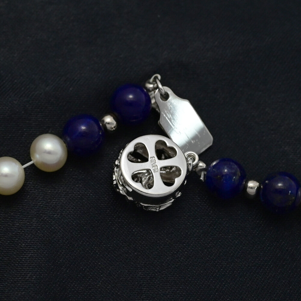 Φ5.5-6.0mm淡水無核真珠・真珠(パール)・ラピスラズリネックレス・ペンダント/Silver/銀製-28.8g//シルバー 翌日配送可【♀】【A】【レディース】★■595397【中古】