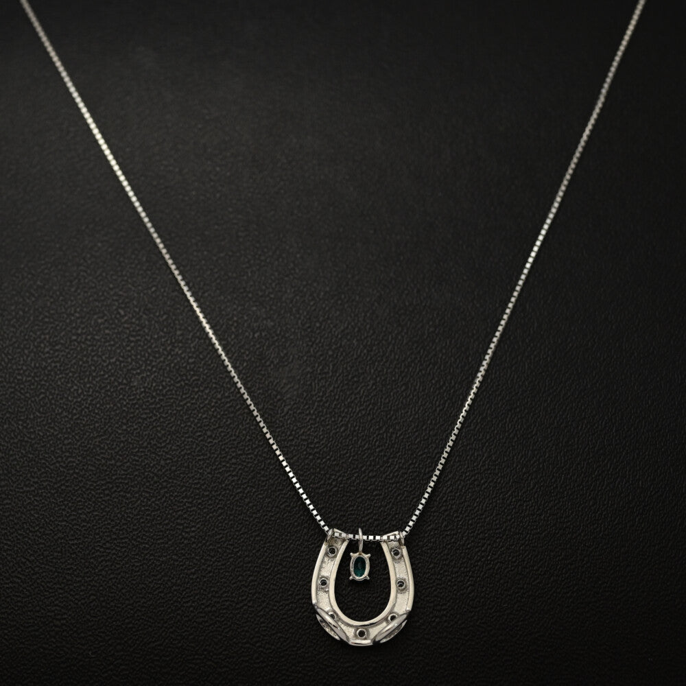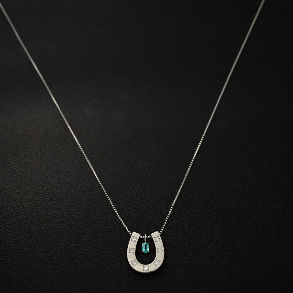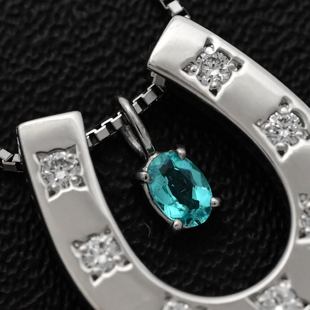 T0.075ct/FD:0.098ct/ホースシュー/馬蹄 1P・パライバトルマリンネックレス・ペンダント/Pt900-Pt850-4.5g/Pプラチナ 翌日配送可【♀】【S】【レディース】★■590455【中古】