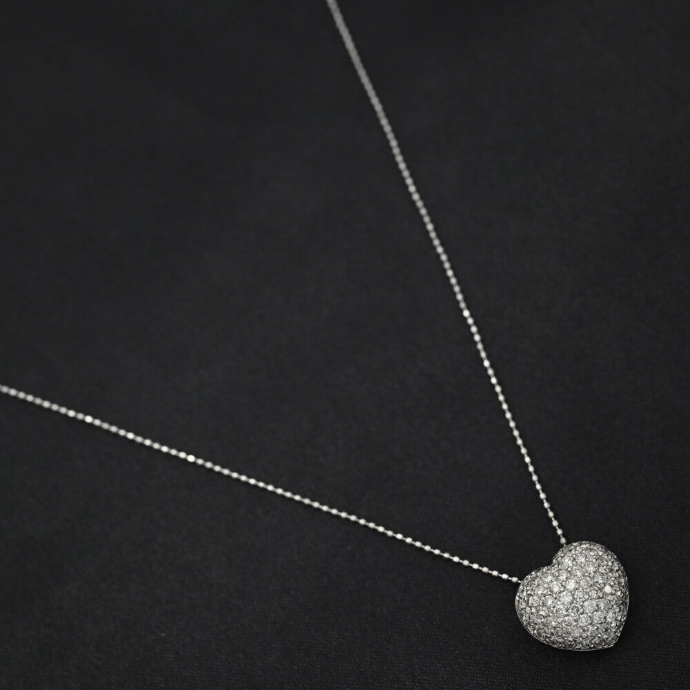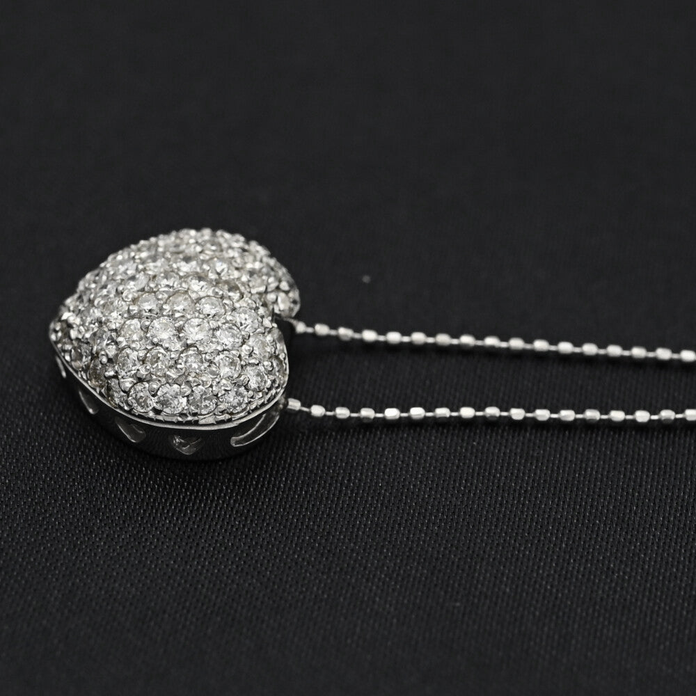 1ct/ハートモチーフ・ハートパヴェ・ダイヤモンド ネックレス・ペンダント/K18WG/750-4.6g/ホワイトゴールド/プレゼント/記念日【♀】【S】【レディース】★■587496【中古】