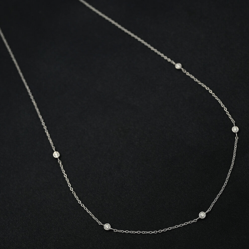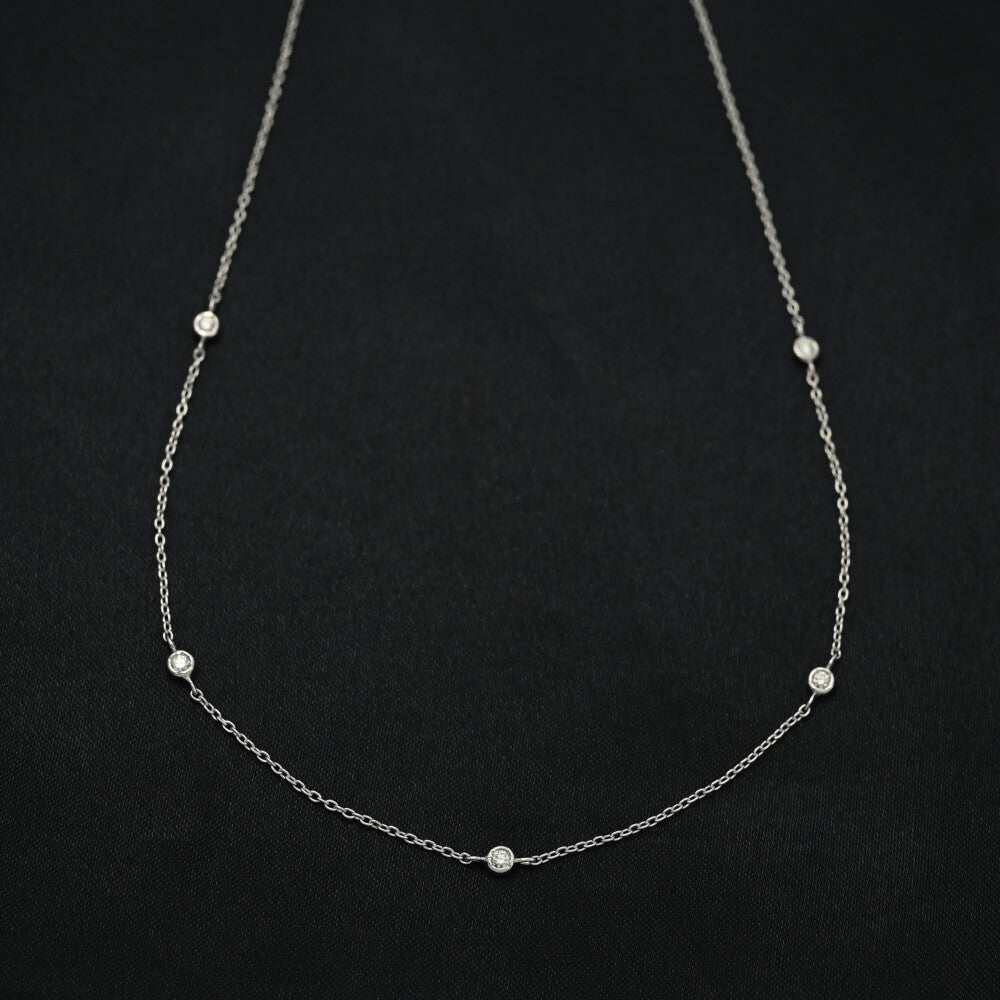 0.08ct/LA SOMA ラソマ 5Pステーションセッティング 5P・ダイヤモンド ネックレス・ペンダント/K18WG/750-2.1g/ホワイトゴールド【♀】【S】【レディース】★■589333【中古】