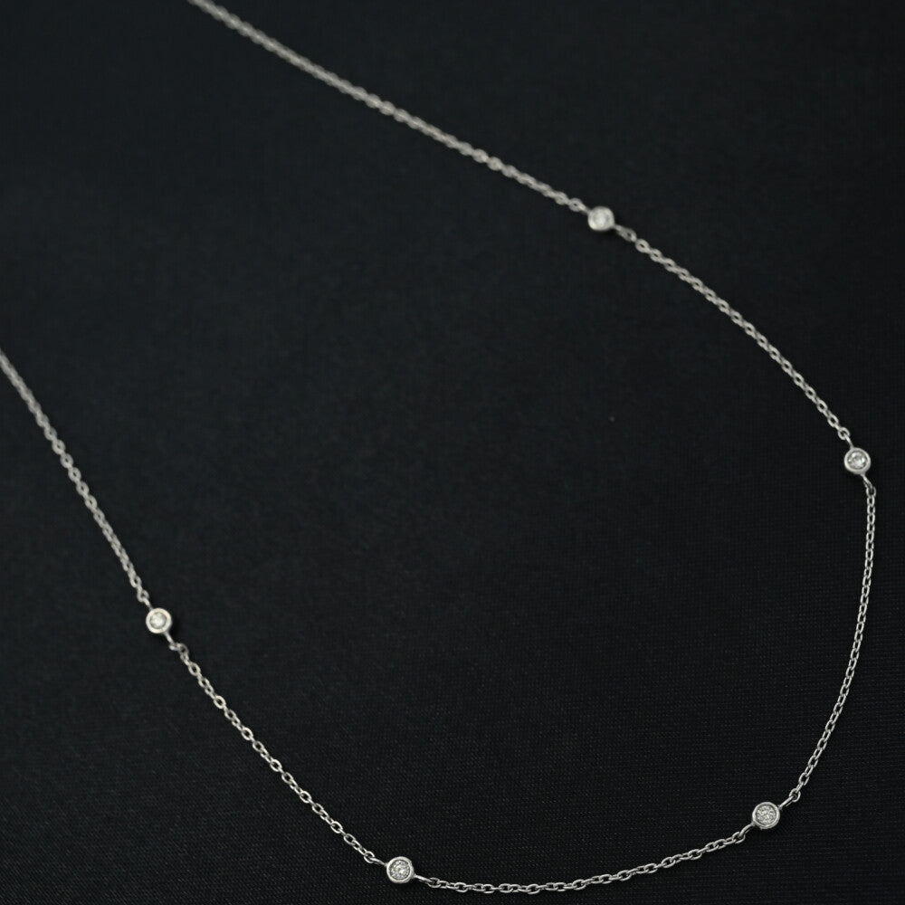 0.08ct/LA SOMA ラソマ 5Pステーションセッティング 5P・ダイヤモンド ネックレス・ペンダント/K18WG/750-2.1g/ホワイトゴールド【♀】【S】【レディース】★■589334【中古】