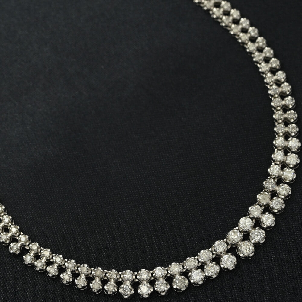 5ct/テニスセッティング・2連 ダイヤモンド ネックレス・ペンダント/K18/750×Pt900コンビ-30.2g/ホワイトゴールド×プラチナ【♀】【S】【レディース】★■589389【中古】