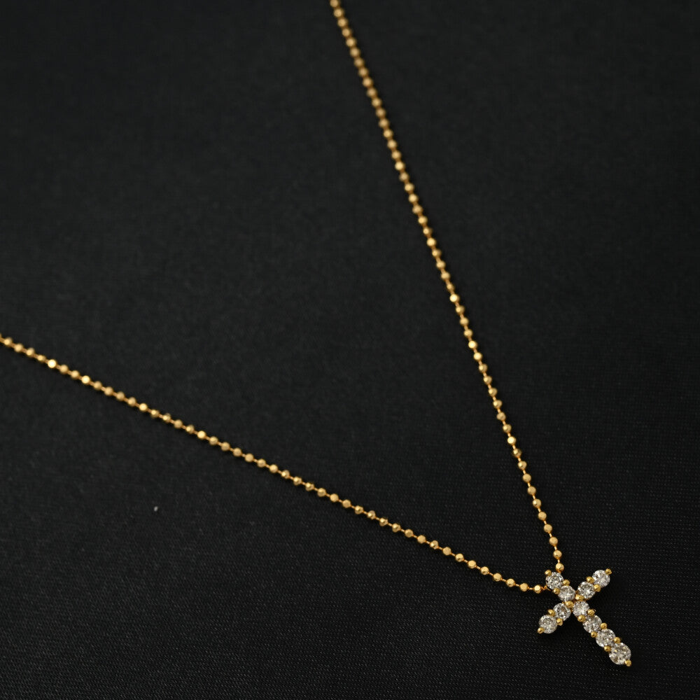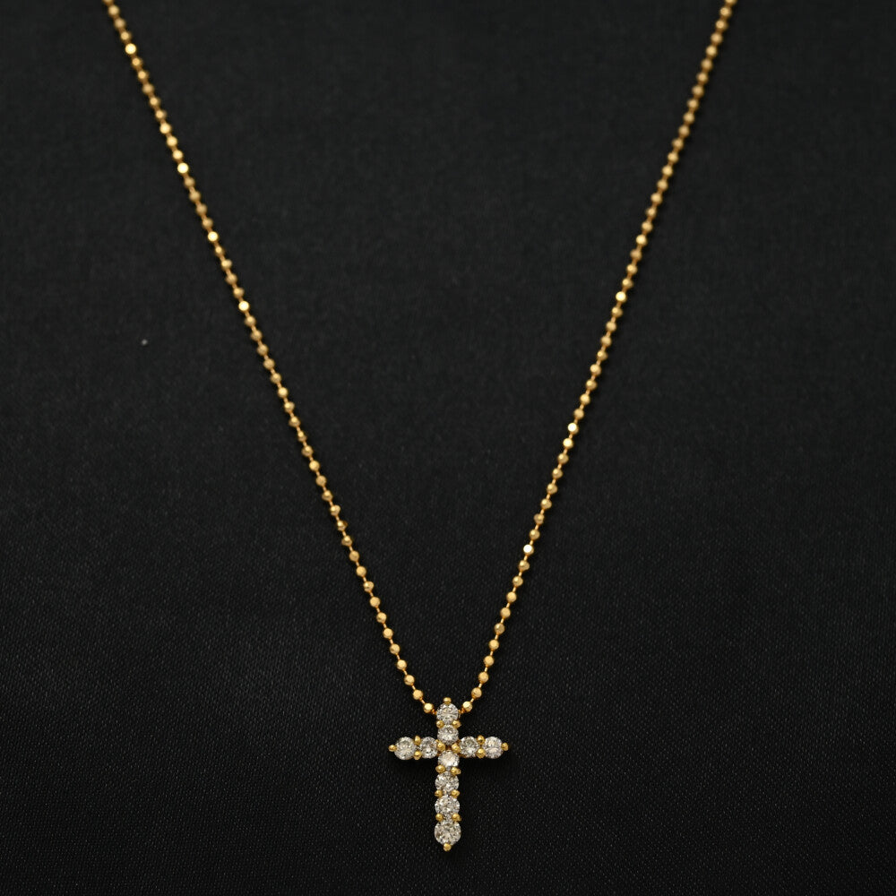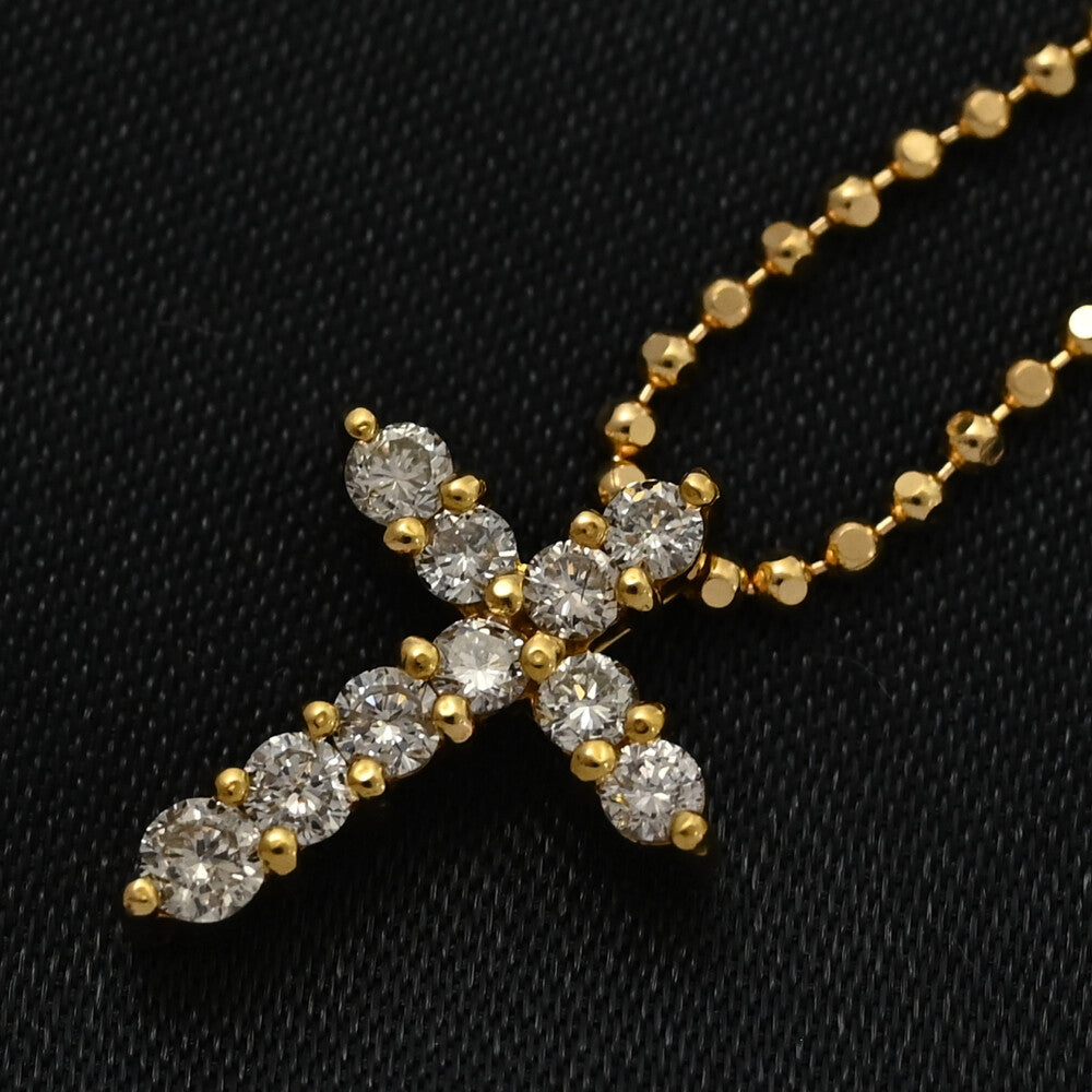 0.3ct/クロスモチーフ・ダイヤモンド ネックレス・ペンダント/K18YG/750-4g/イエローゴールド/プレゼント/記念日【S】【メンズ・レディース】★■589507【中古】