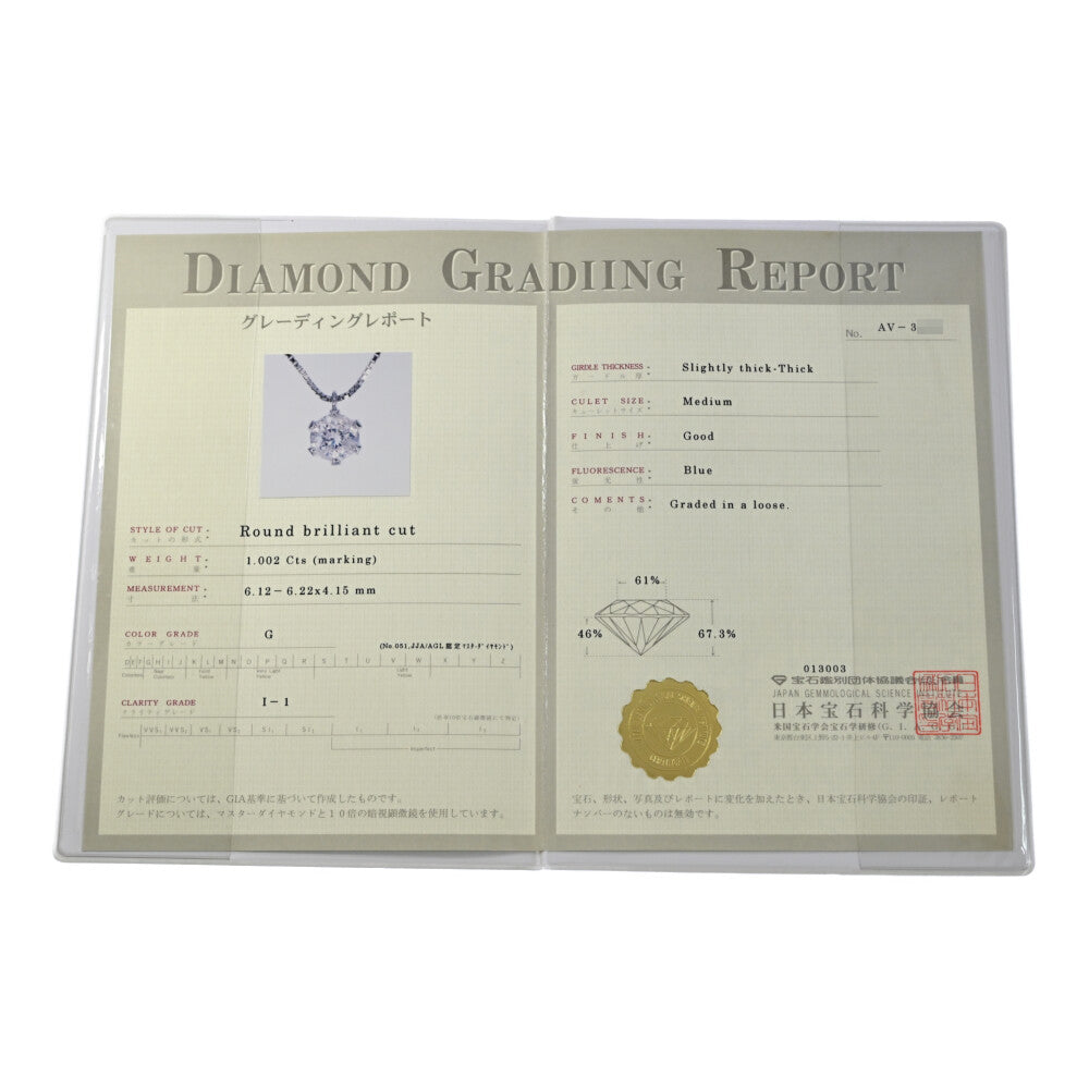 1.002ct/1P・ダイヤモンド ネックレス・ペンダント/Pt900-Pt850-4.7g/プラチナ/ワンポイント/プレゼント/記念日【♀】【N】【レディース】★■589517【中古】