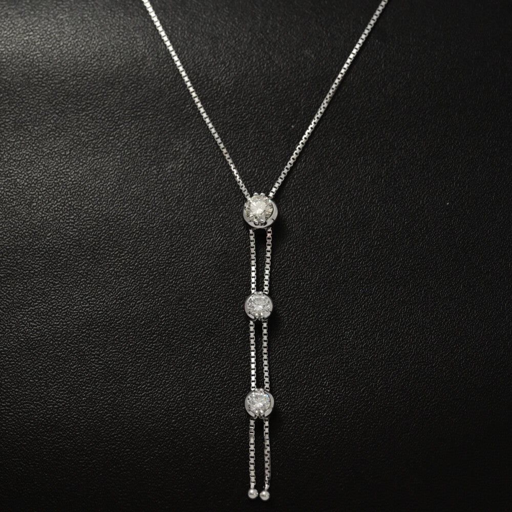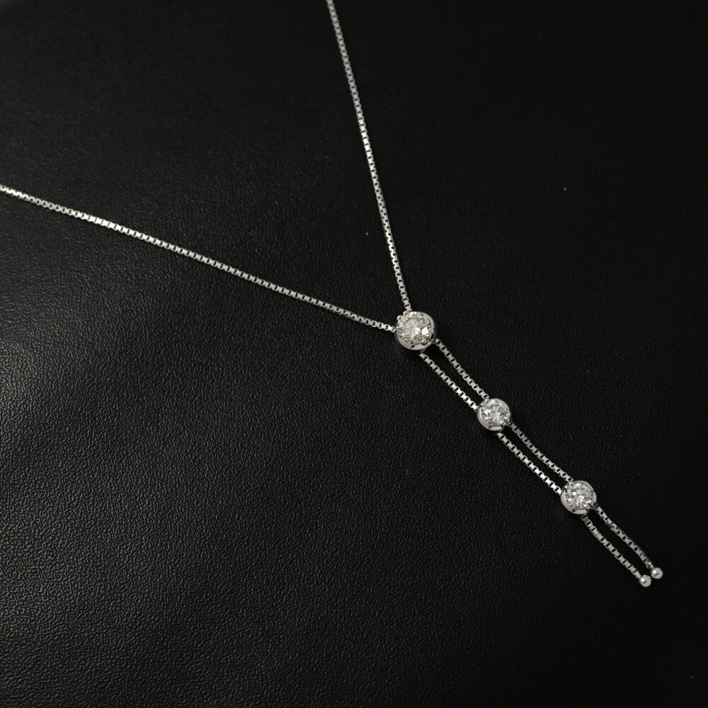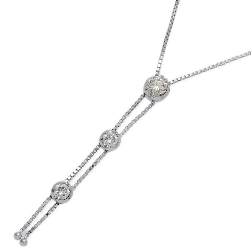 1ct/スライドデザイン 3連セッティング・ダイヤモンドネックレス・ペンダント/Pt900-Pt850-9.5g/プラチナ/プレゼント/記念日【♀】【S】【レディース】★■590518【中古】