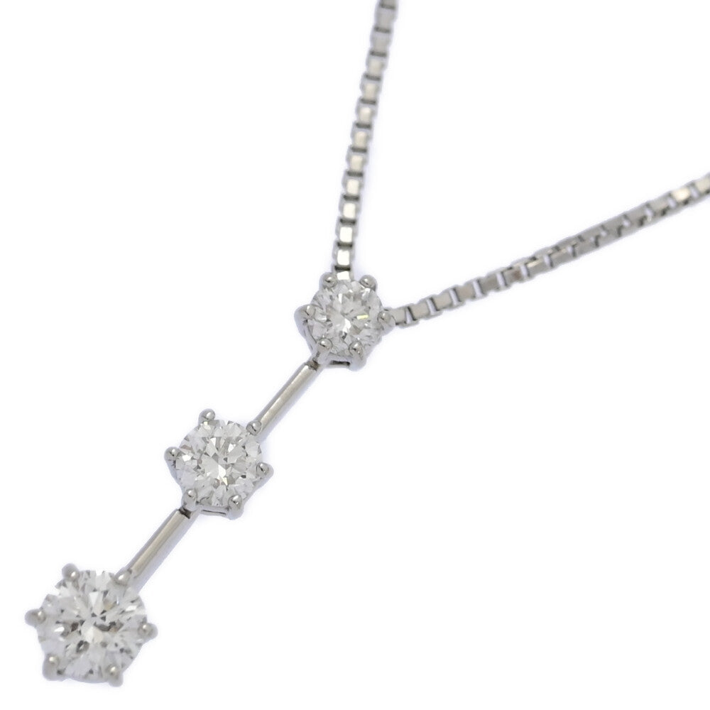 0.280ct/FD:0.25ct/3連セッティング・ダイヤモンドネックレス・ペンダント/Pt900-Pt850-4.9g/プラチナ 翌日配送可【S】【メンズ・レディース】★■590525【中古】