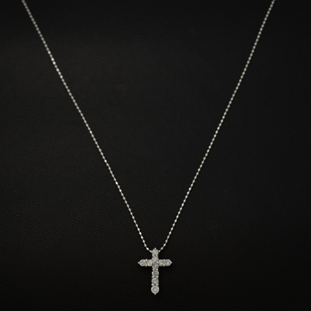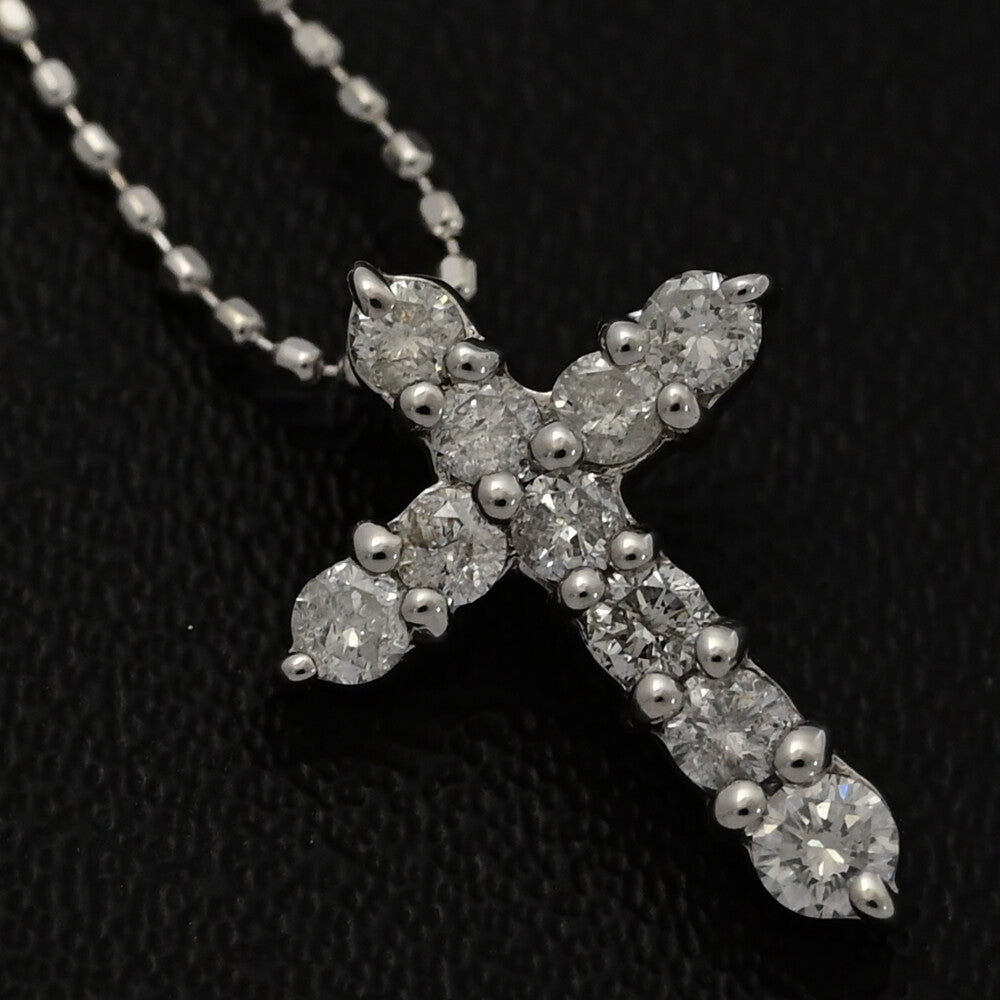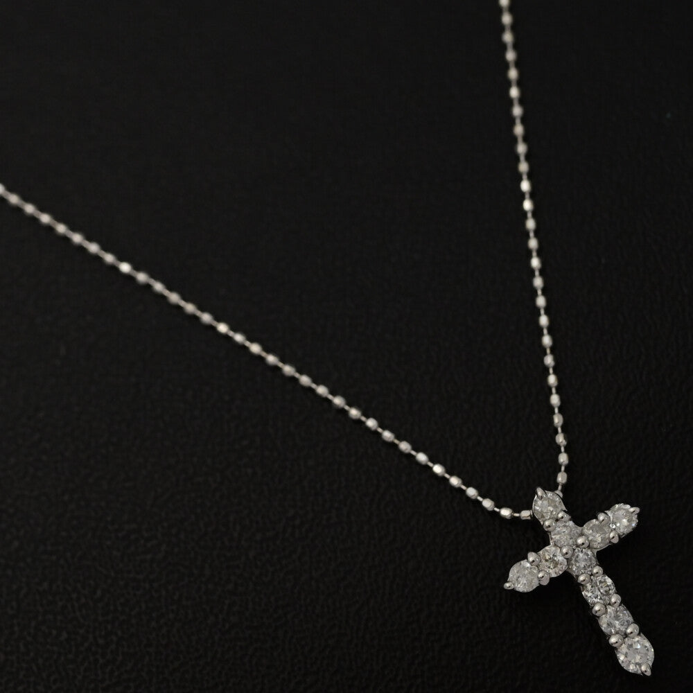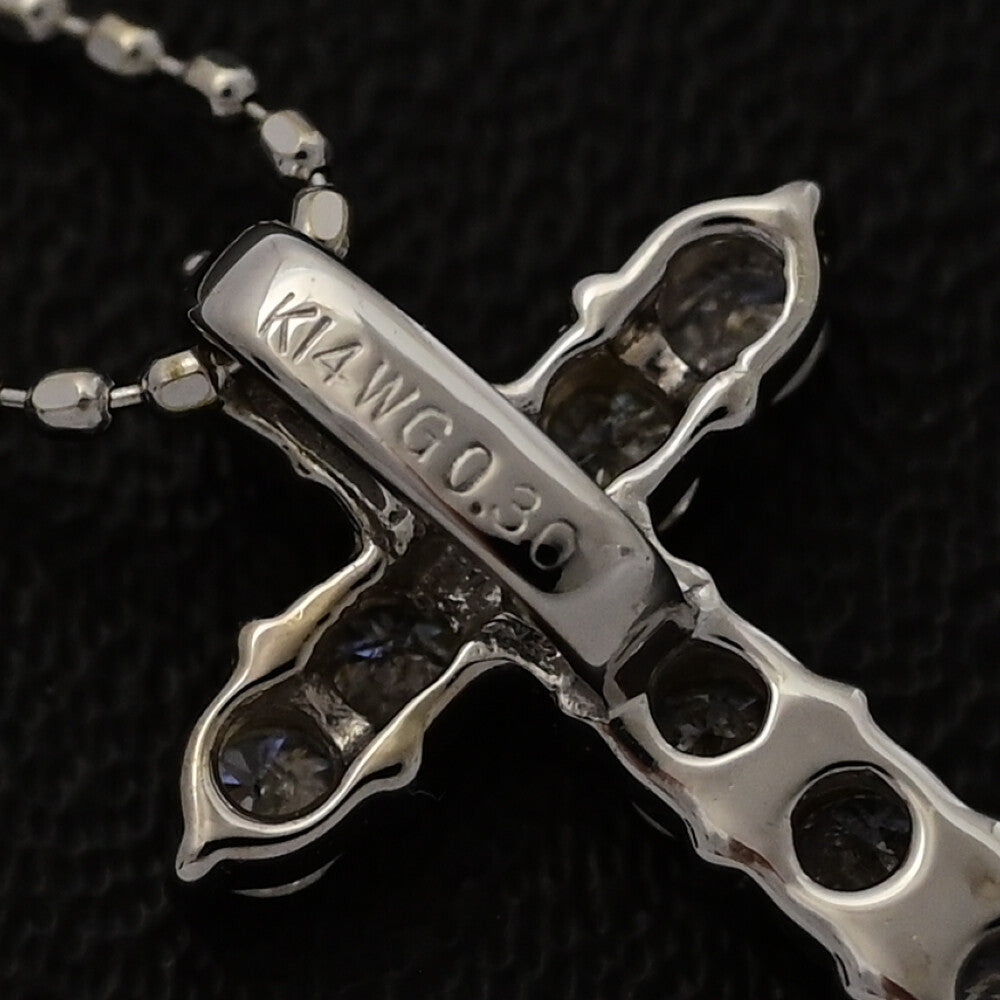 0.3ct/クロスモチーフ・ダイヤモンドネックレス・ペンダント/K14WG/585-1.6g/ホワイトゴールド 翌日配送可【♀】【S】【レディース】★■590760【中古】