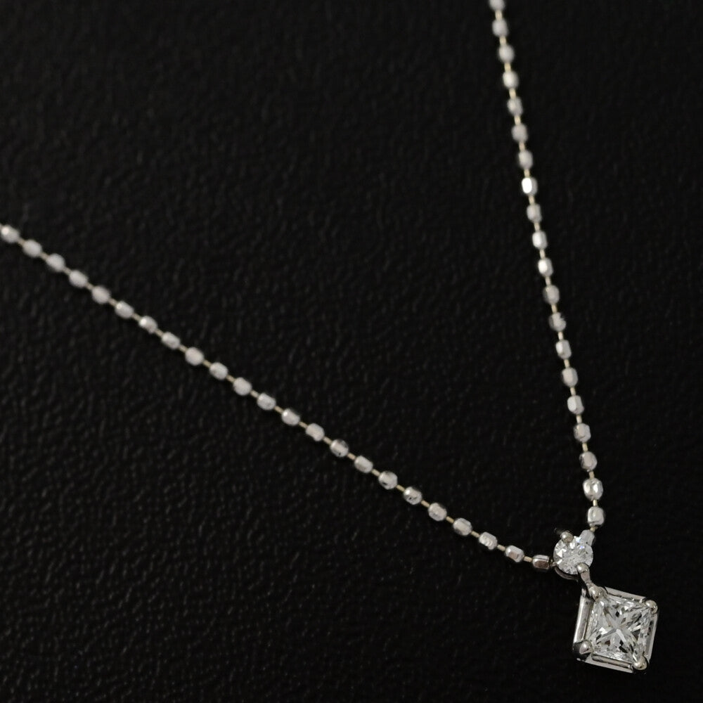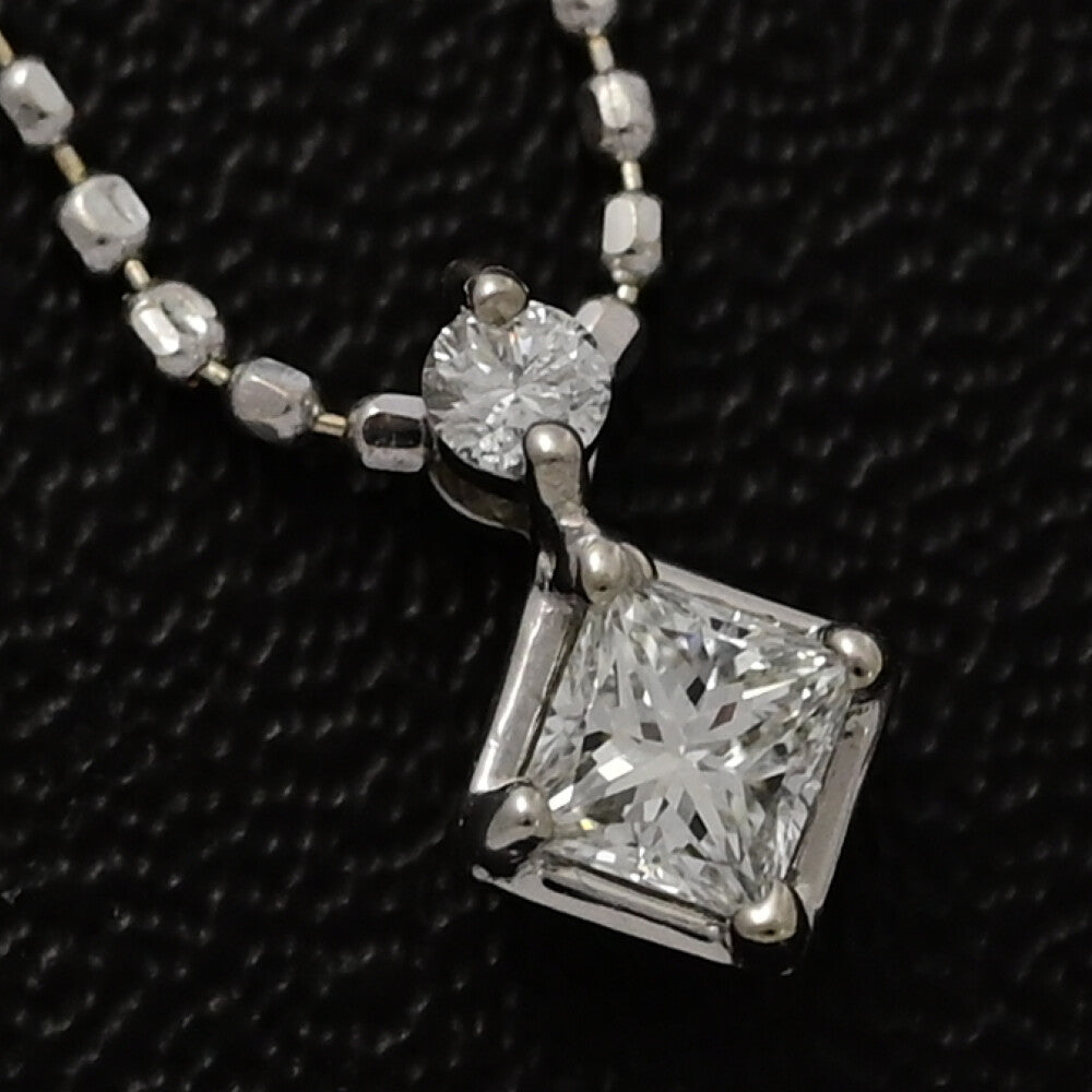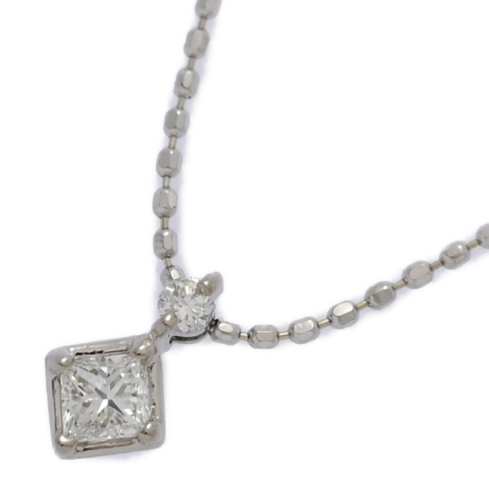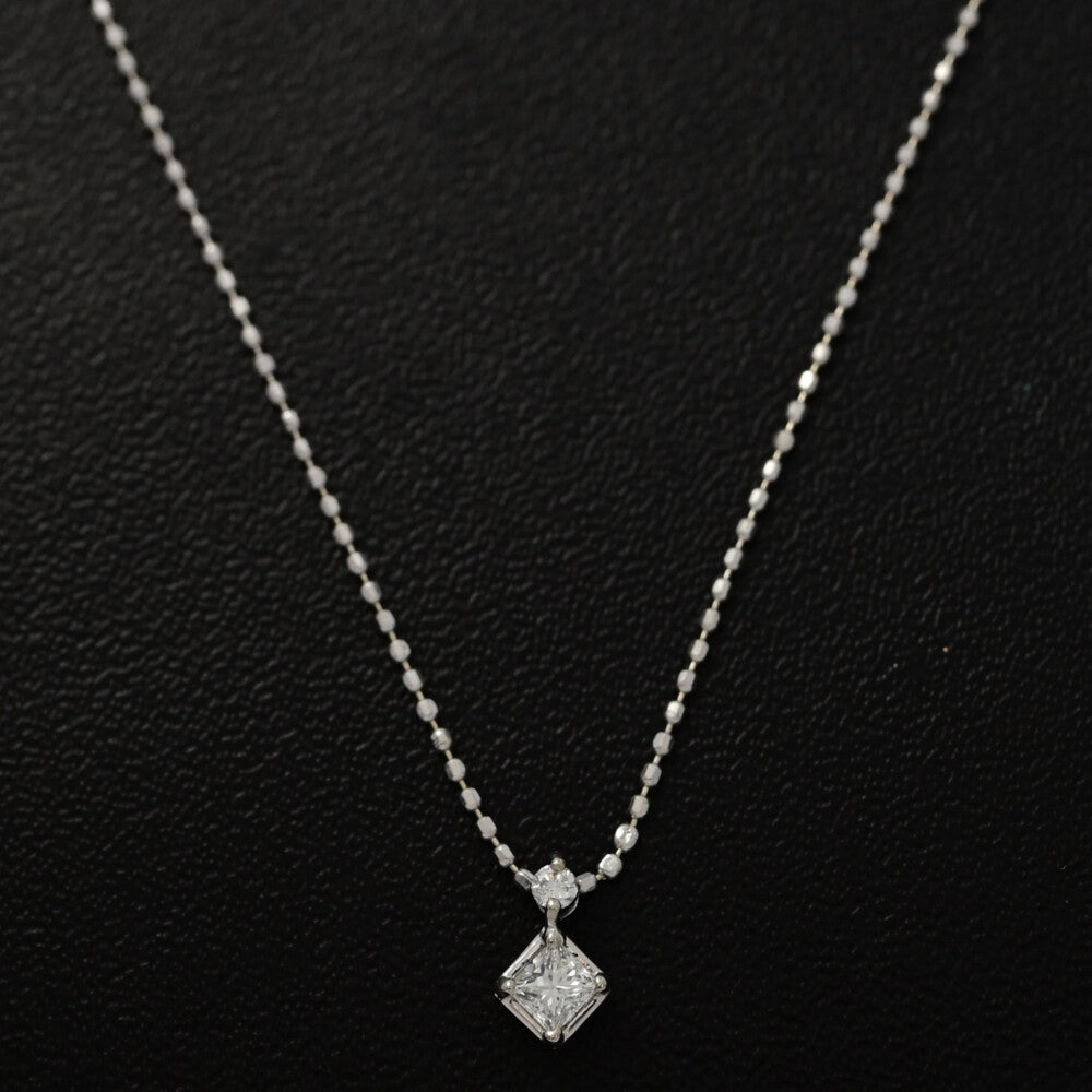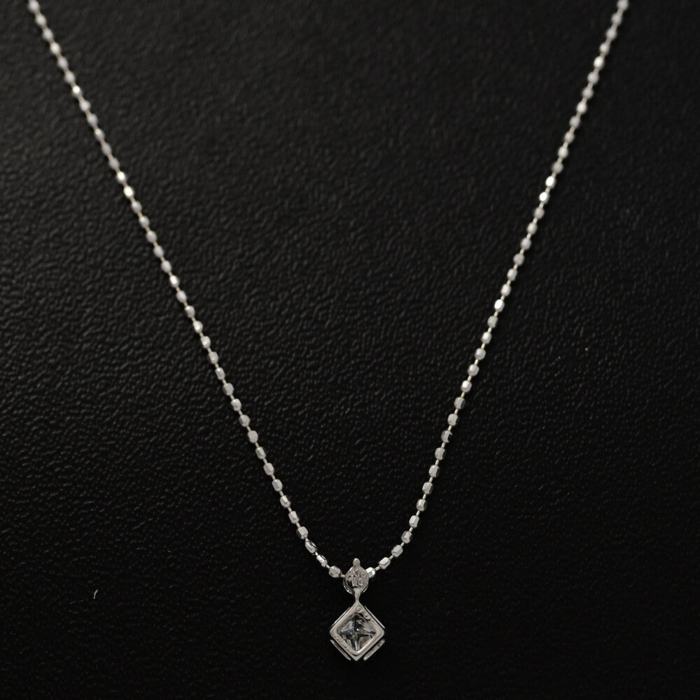 0.1ct/FD:0.02ct/1P・スクエア・ダイヤモンド ネックレス・ペンダント/K18WG/750-1.6g/ホワイトゴールド/プレゼント/記念日【♀】【S】【レディース】★■590974【中古】