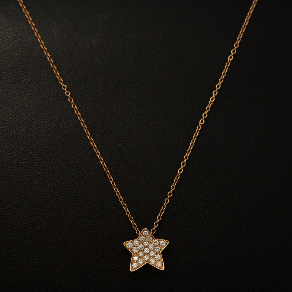 0.27ct/PICCHIOTTI ピキョッティ スターモチーフ・ダイヤモンドネックレス・ペンダント/K18PG/750-4.7g/ピンクゴールド【♀】【N】【レディース】★■591683【中古】