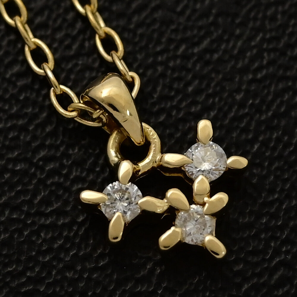 0.06ct/agete アガット 3P・ダイヤモンド ネックレス・ペンダント/K18YG/750-1.9g/イエローゴールド/プレゼント/記念日【♀】【S】【レディース】★■591790【中古】