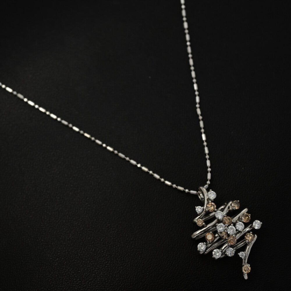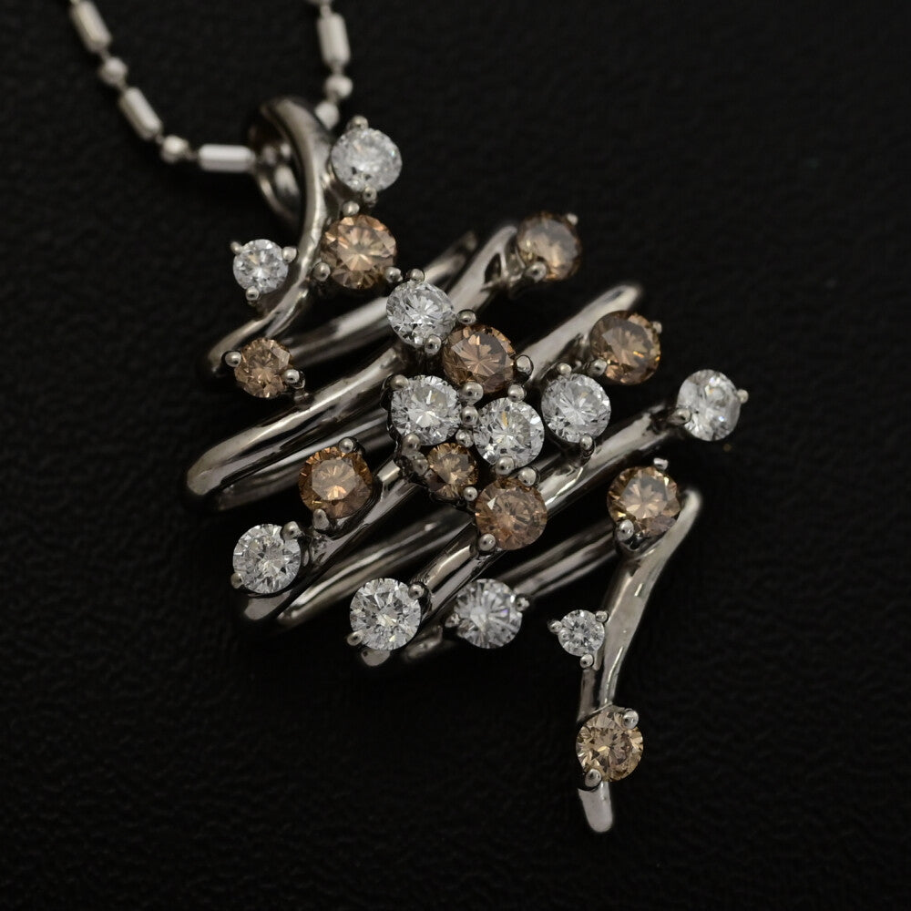 1.23ct/ブラウンダイヤモンド カラーレスダイヤモンド ネックレス・ペンダント/K18WG/750-9.3g/ホワイトゴールド/プレゼント【♀】【S】【レディース】★■592237【中古】