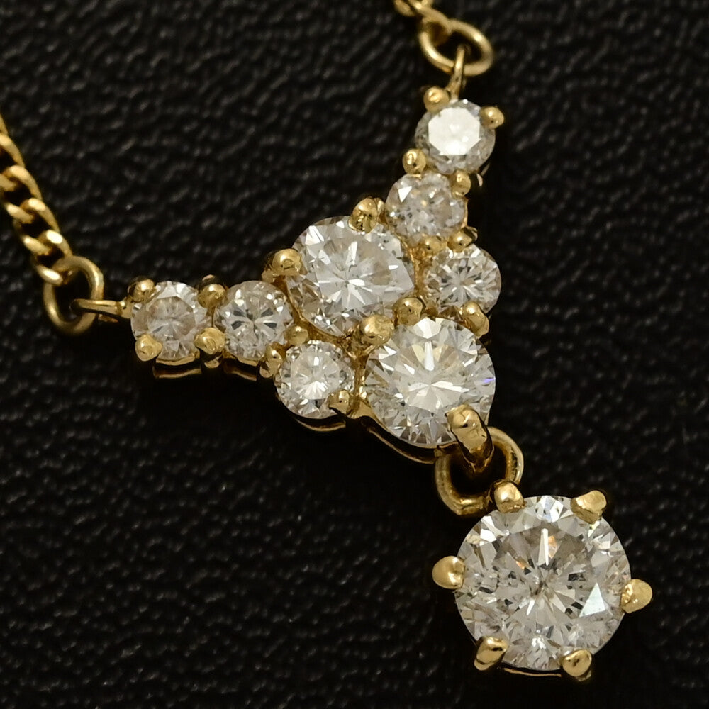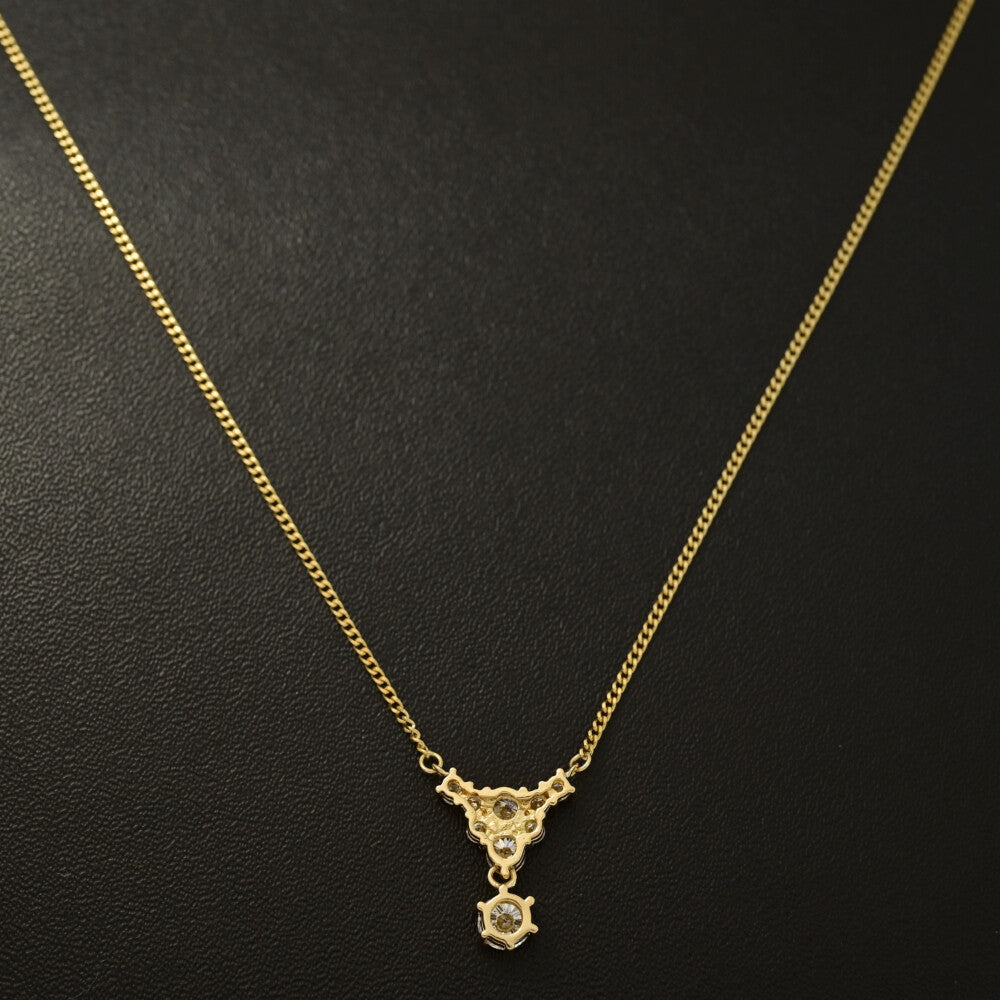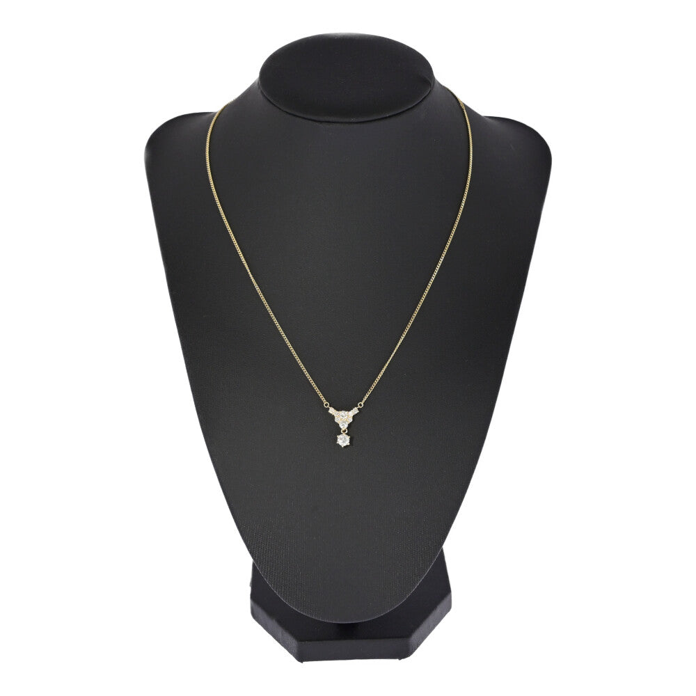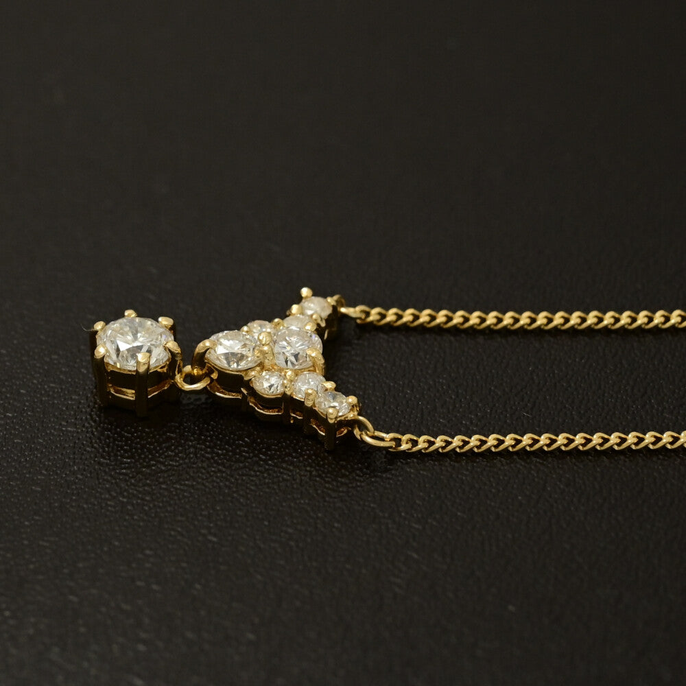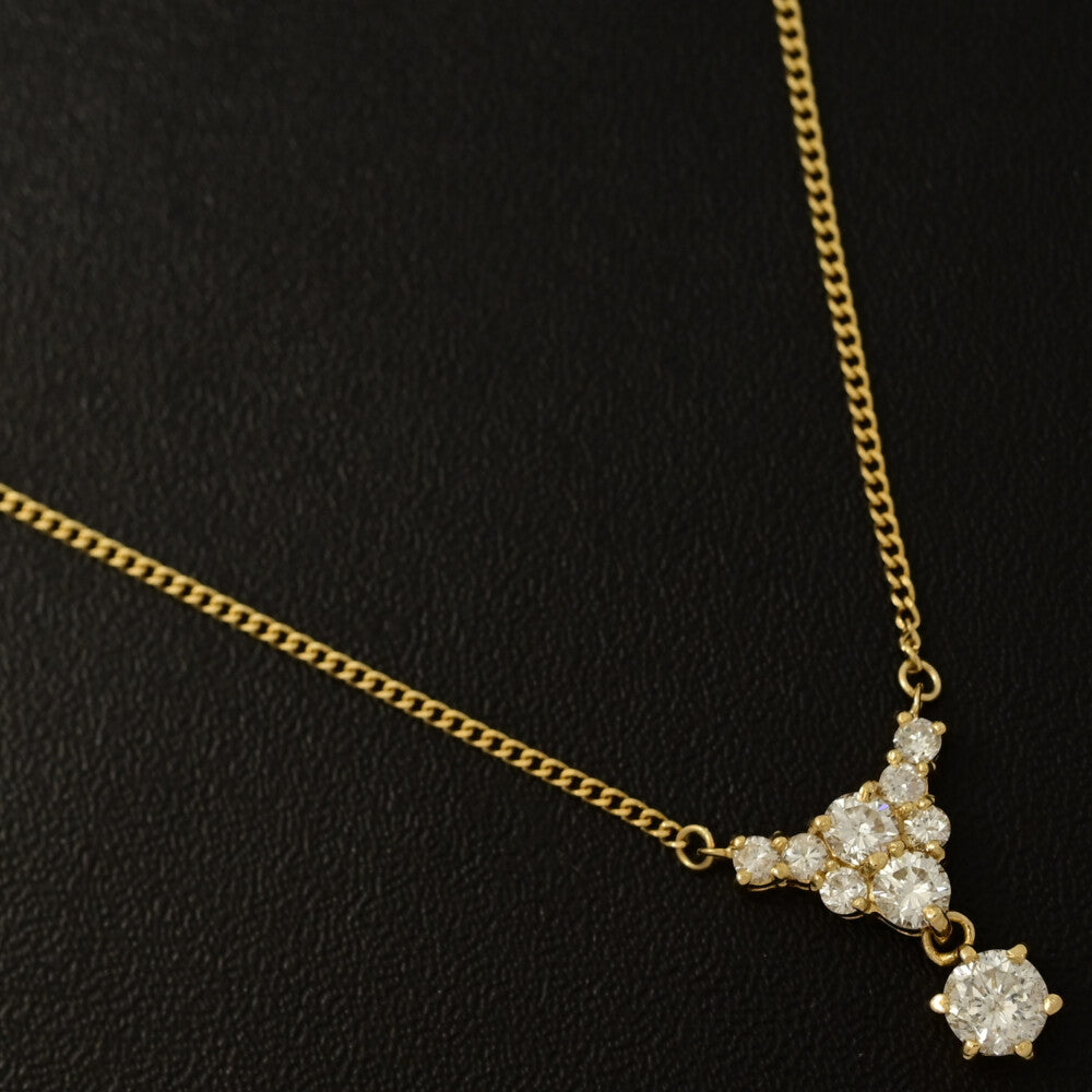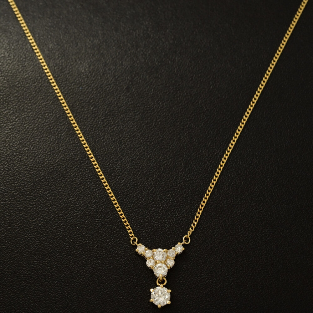 1ct/9P・トライアングルモチーフ ダイヤモンドネックレス・ペンダント/K18YG/750-4.0g/イエローゴールド/プレゼント/記念日【♀】【S】【レディース】★■593930【中古】