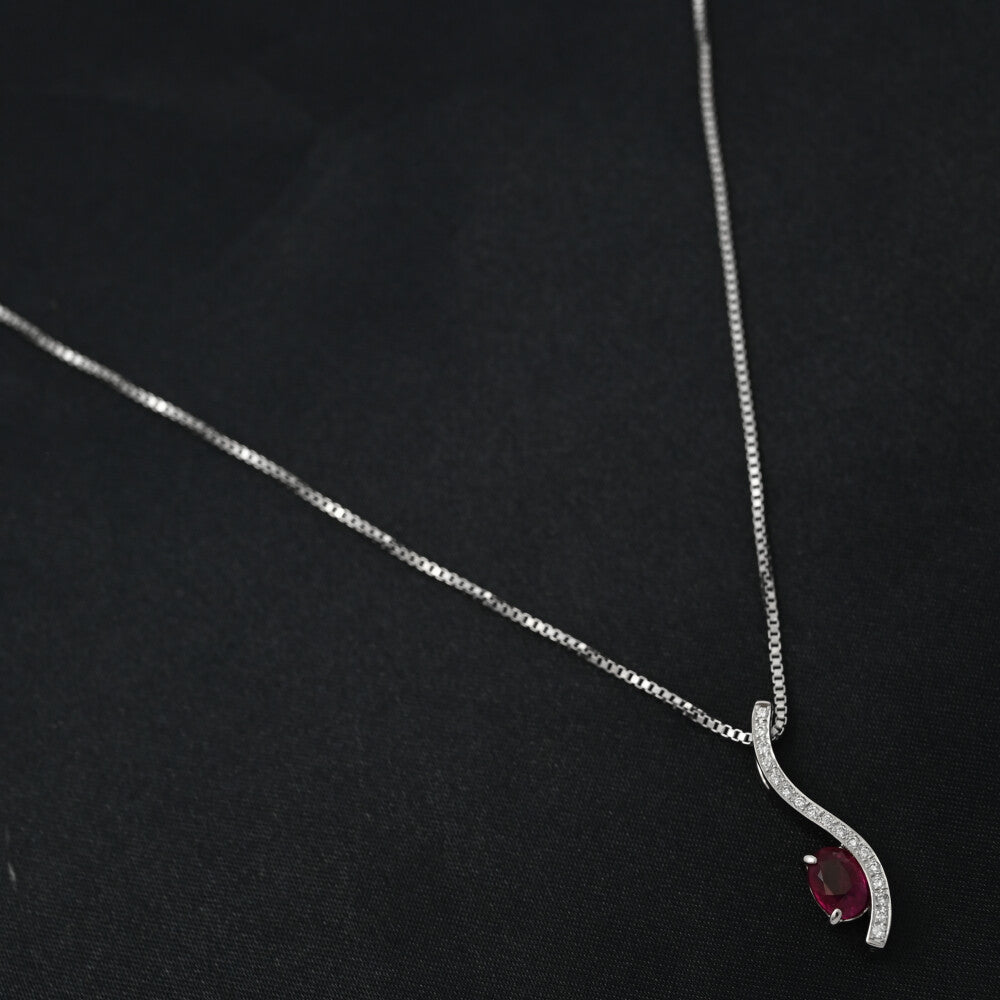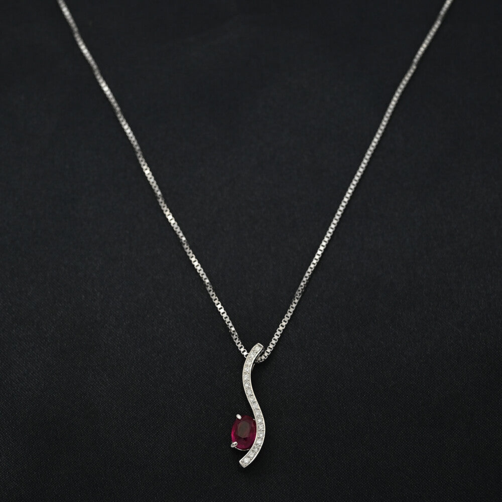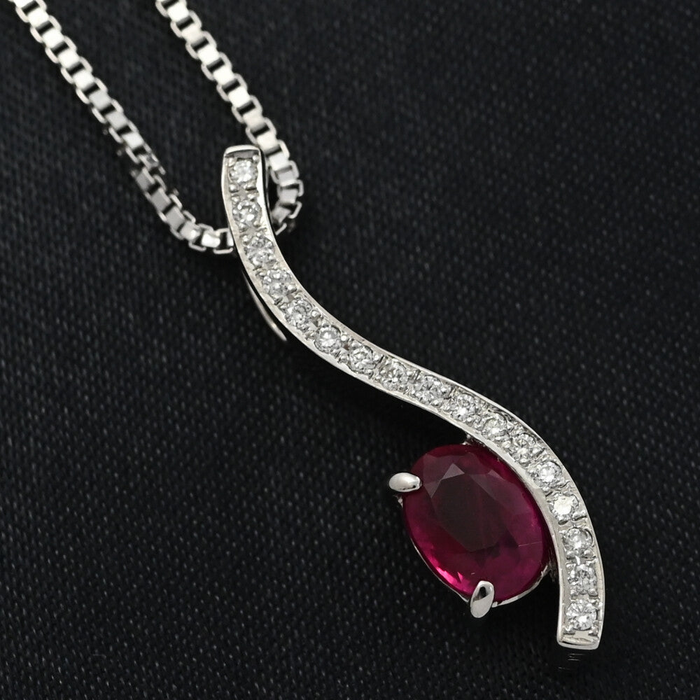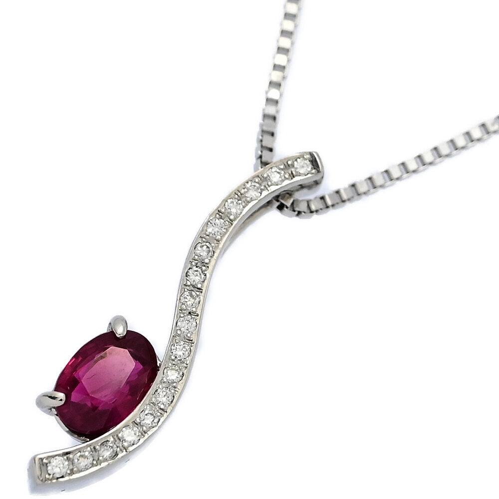 ホワイトゴールド ルビー・ダイヤモンドネックレス・ペンダント/K18WG/750-4.4g/RU1.03ct/FD:0.11ct/翌日配送可【♀】【S】【レディース】★■588014【中古】