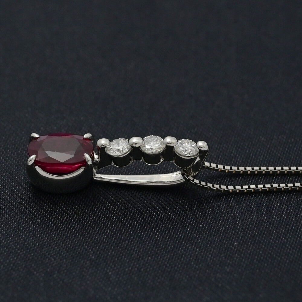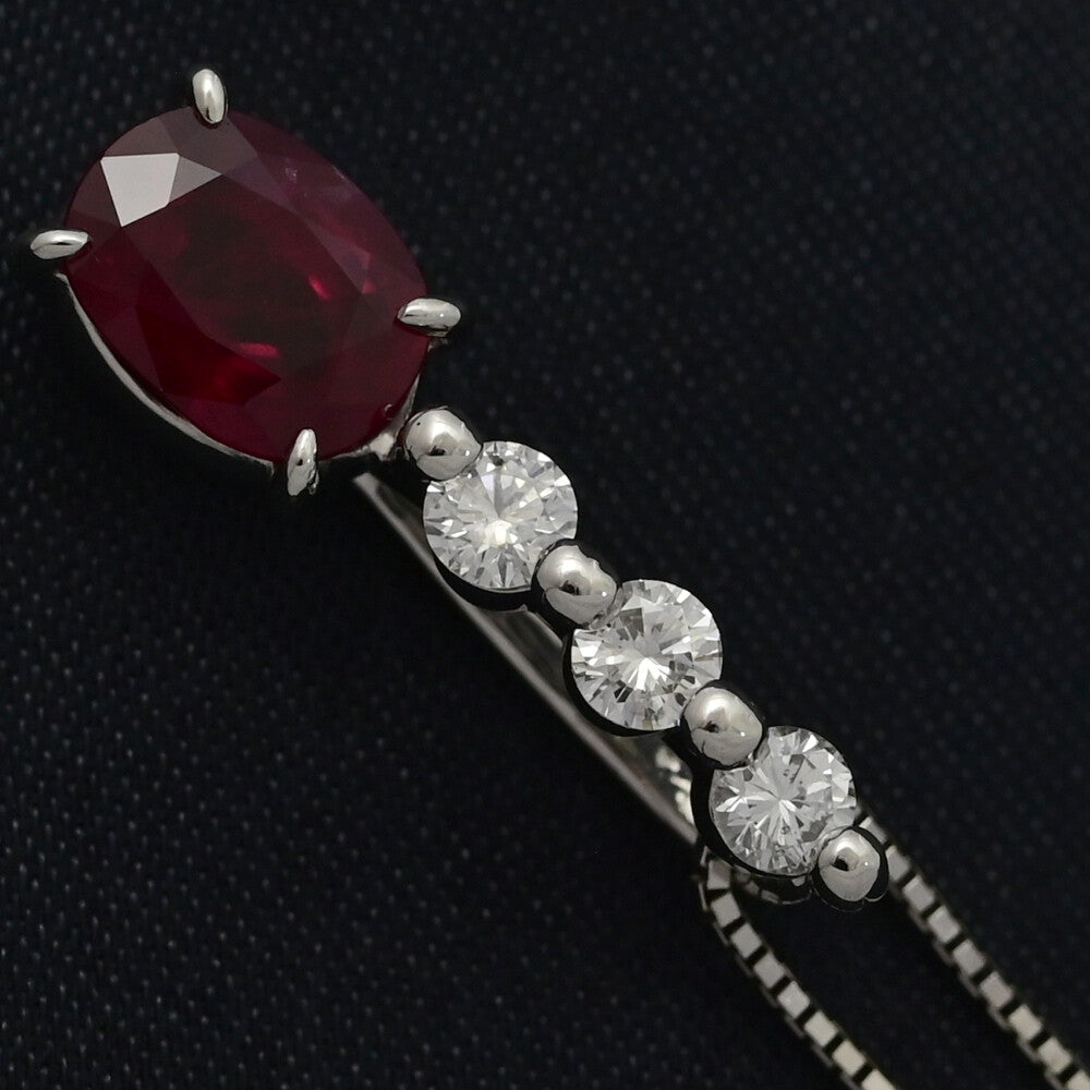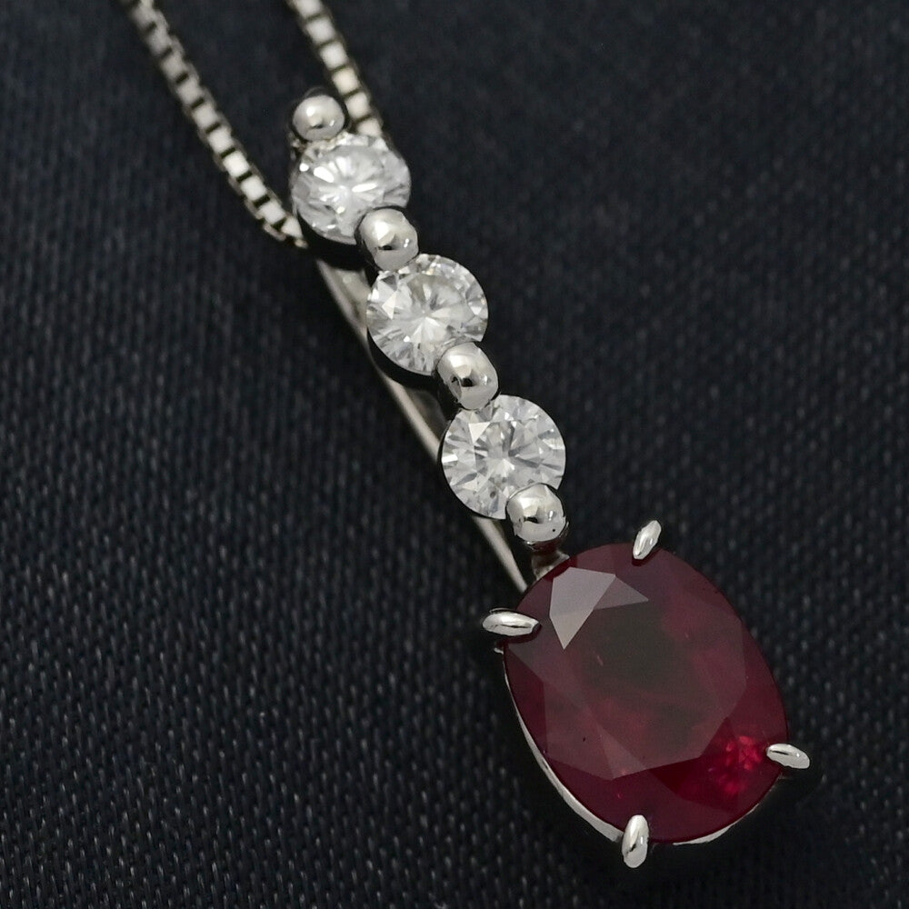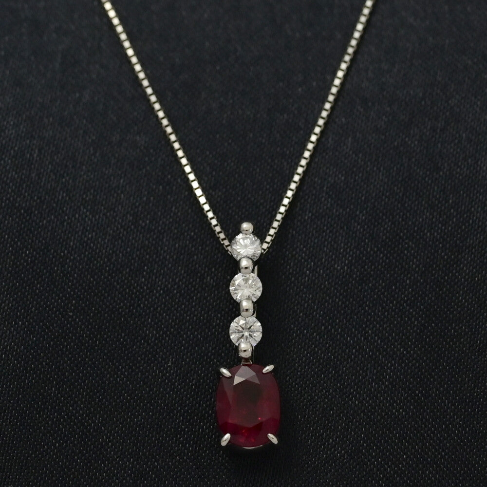 RU1.227ct/FD:0.22ct/7月 誕生石 1P・ルビー・ダイヤモンドネックレス・ペンダント/Pt900-Pt850-4.2g/プラチナ 翌日配送可【♀】【N】【レディース】★■590989【中古】