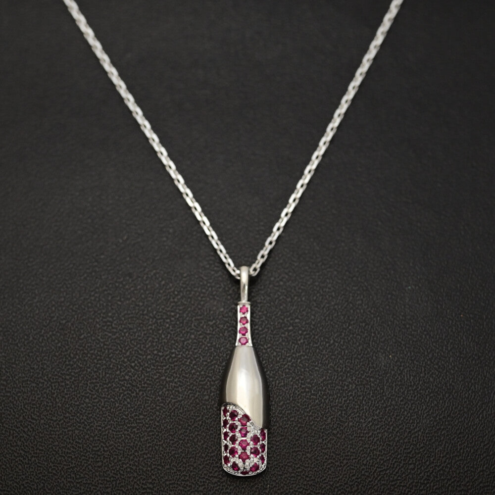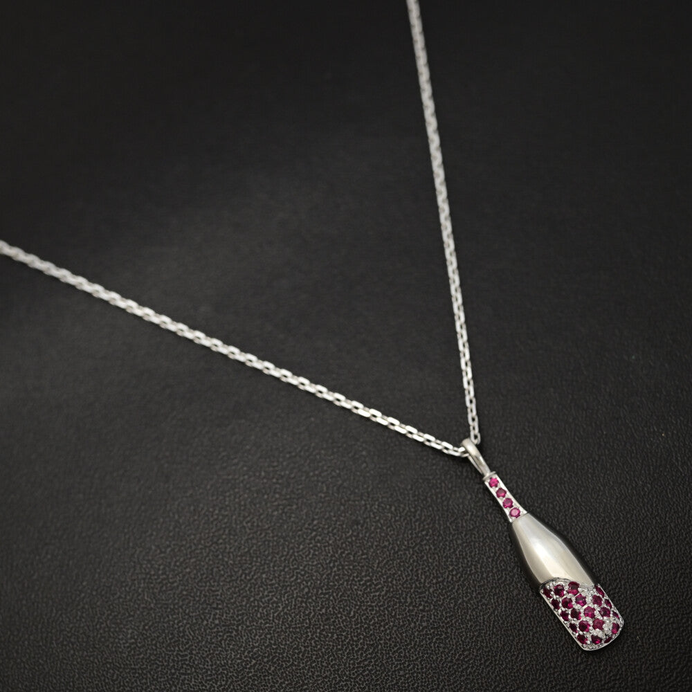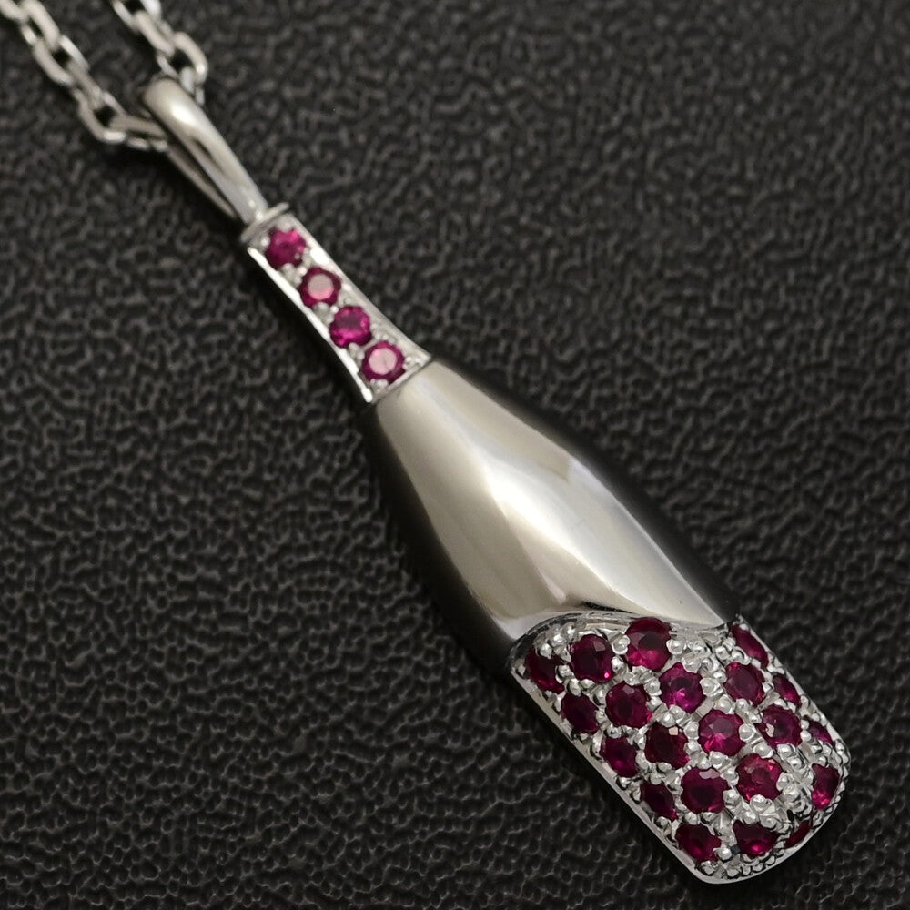 RU0.36ct/ルビー ワインボトル ネックレス・ペンダント/Pt900-Pt850-9.7g/プラチナ 翌日配送可【♀】【N】【レディース】★■593895【中古】