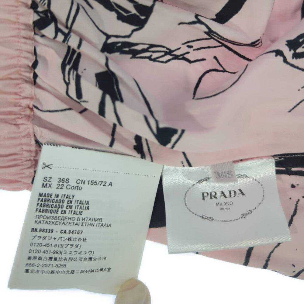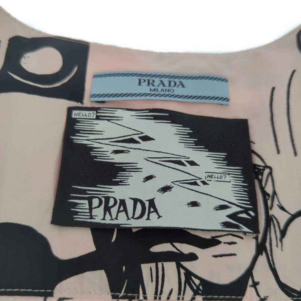 PRADA プラダ カートゥーンプリント柄 ウエストリボン コットン ノースリーブ ワンピース/P36M9 S181 1Q8/36 S/ピンク【春夏】【♀】【A】【レディース】★■593835【中古】