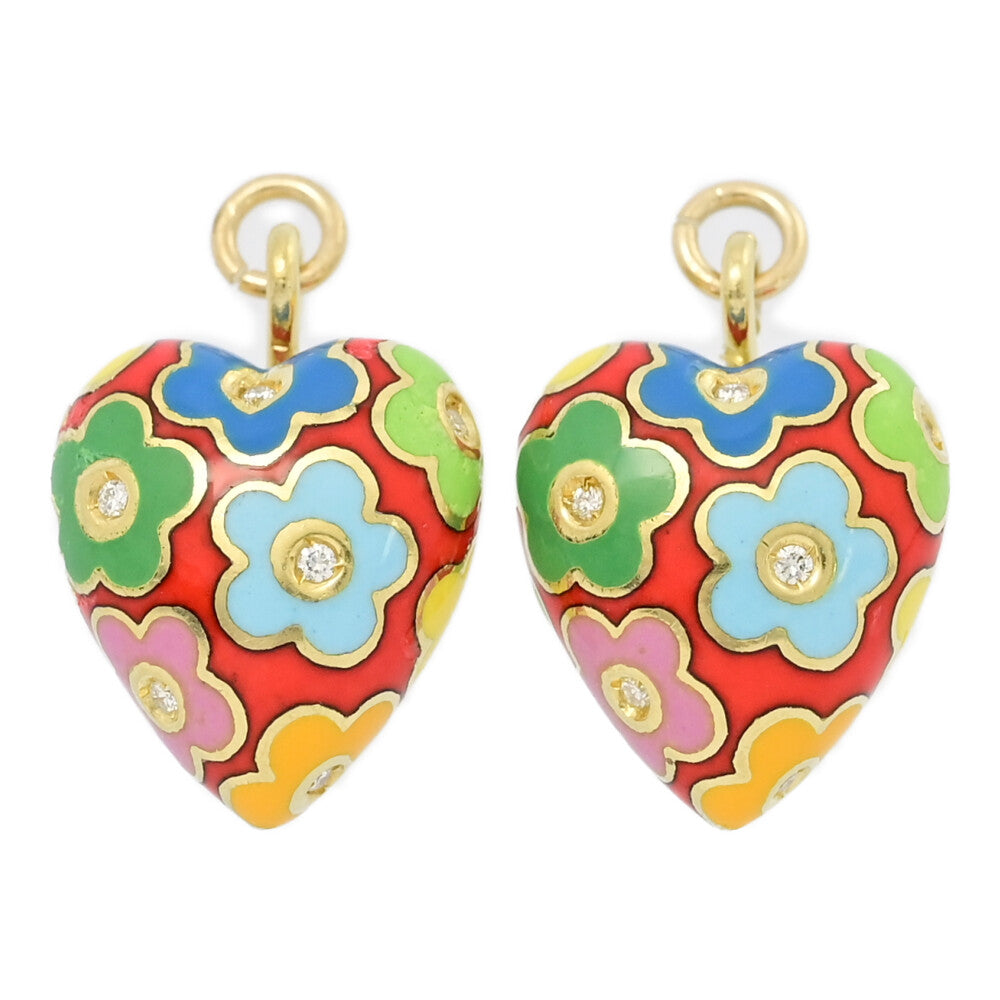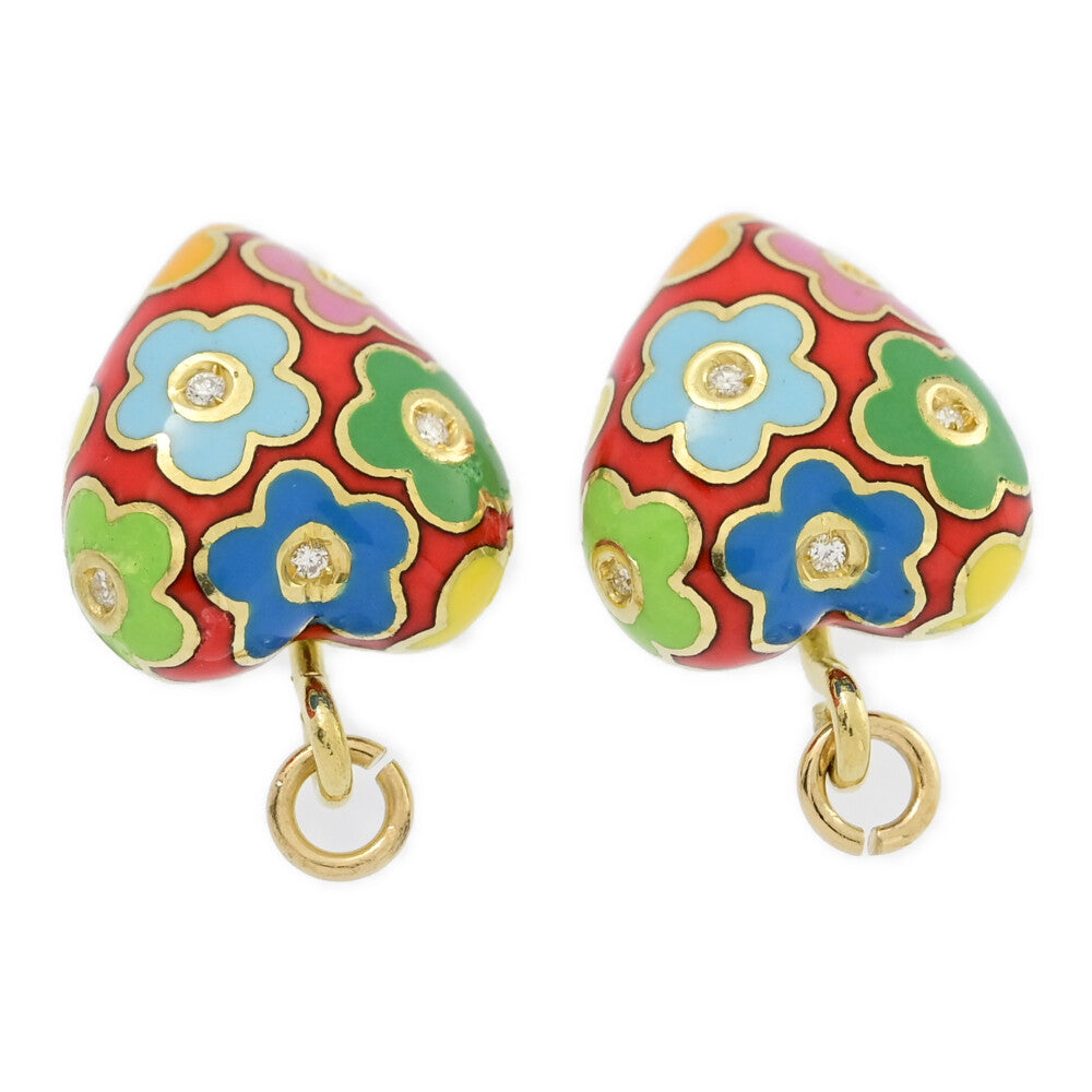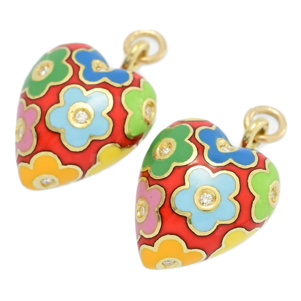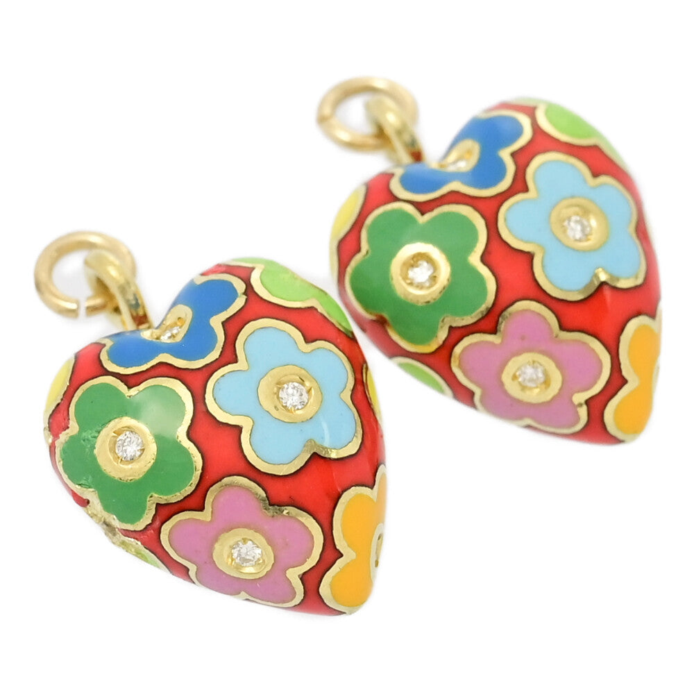 0.12ct/チャーム・七宝/エマーユ ハートモチーフ・ダイヤモンド ピアスチャーム/K18YG/750-8.6g/イエローゴールド/パーツ【♀】【N】【レディース】★■556057【中古】
