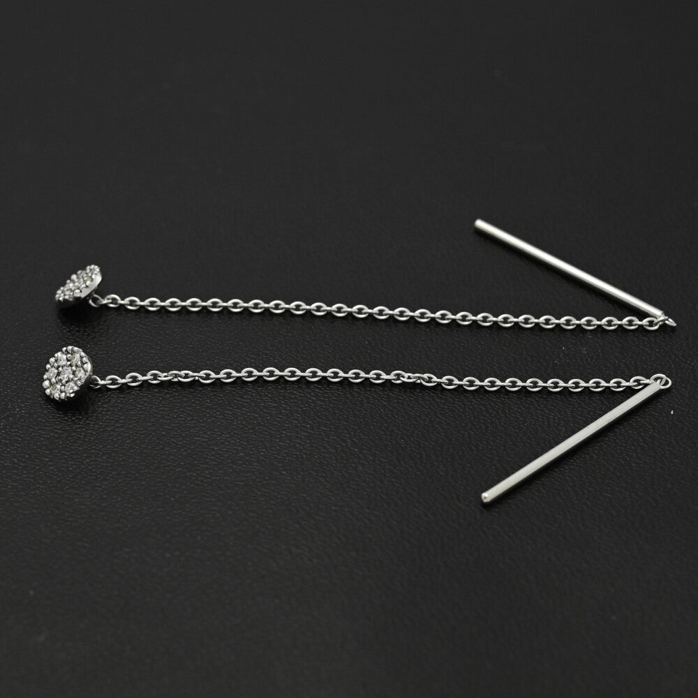 GOLD&Roses ゴールド&ローゼス ペアフリル 14P・ダイヤモンド チェーン スウィング ピアス/K18(WG無)-1.5g/ホワイトゴール【♀】【S】【レディース】★■588866【中古】