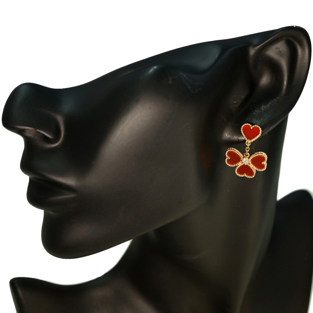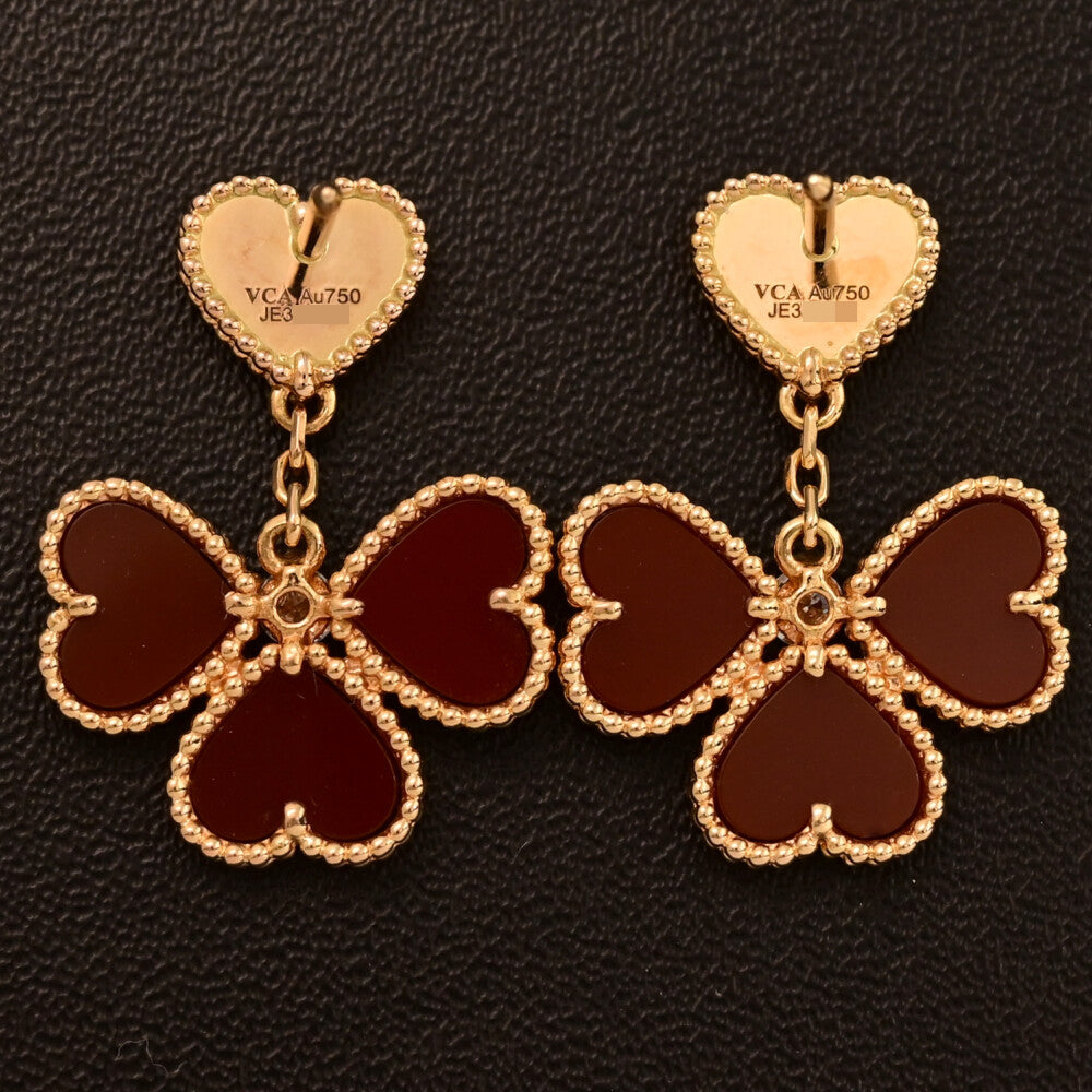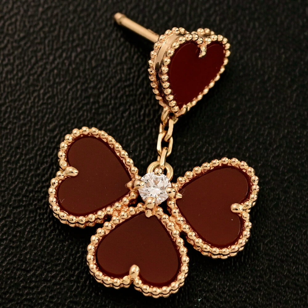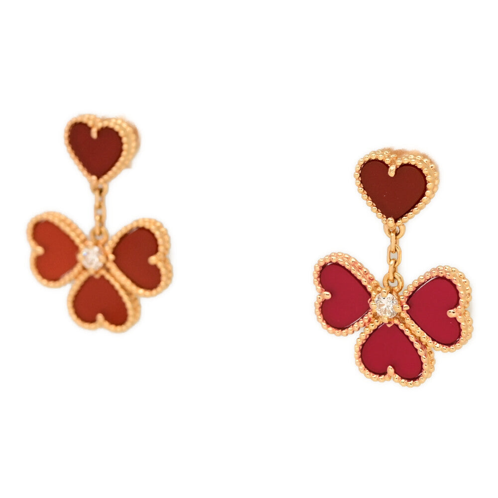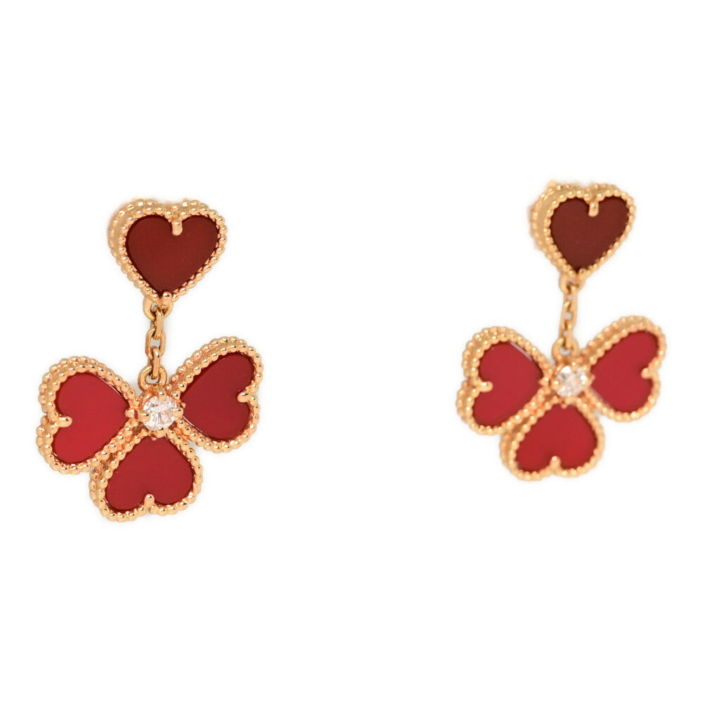 Van Cleef & Arpels ヴァンクリーフアンドアーペル スウィートハート カーネリアン ダイヤモンド ピアス/K18RG/750-6.2g【♀】【A】【レディース】★■595364【中古】