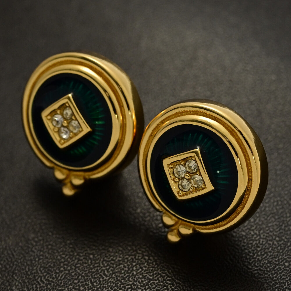 burberry’s バーバリー ラインストーン イヤリング/合金/メッキ-13.0g/ゴールド×グリーン/プレゼント/記念日【♀】【A】【レディース】★■592681【中古】
