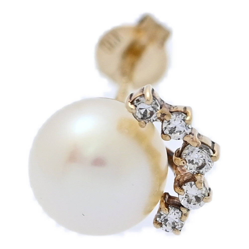 agete アガット 片方・アコヤ真珠/Japan Pearl/養殖真珠・真珠(パール)・ダイヤモンドピアス/K10YG/416-0.6g/Φ6.3mm【♀】【S】【レディース】★■589422【中古】