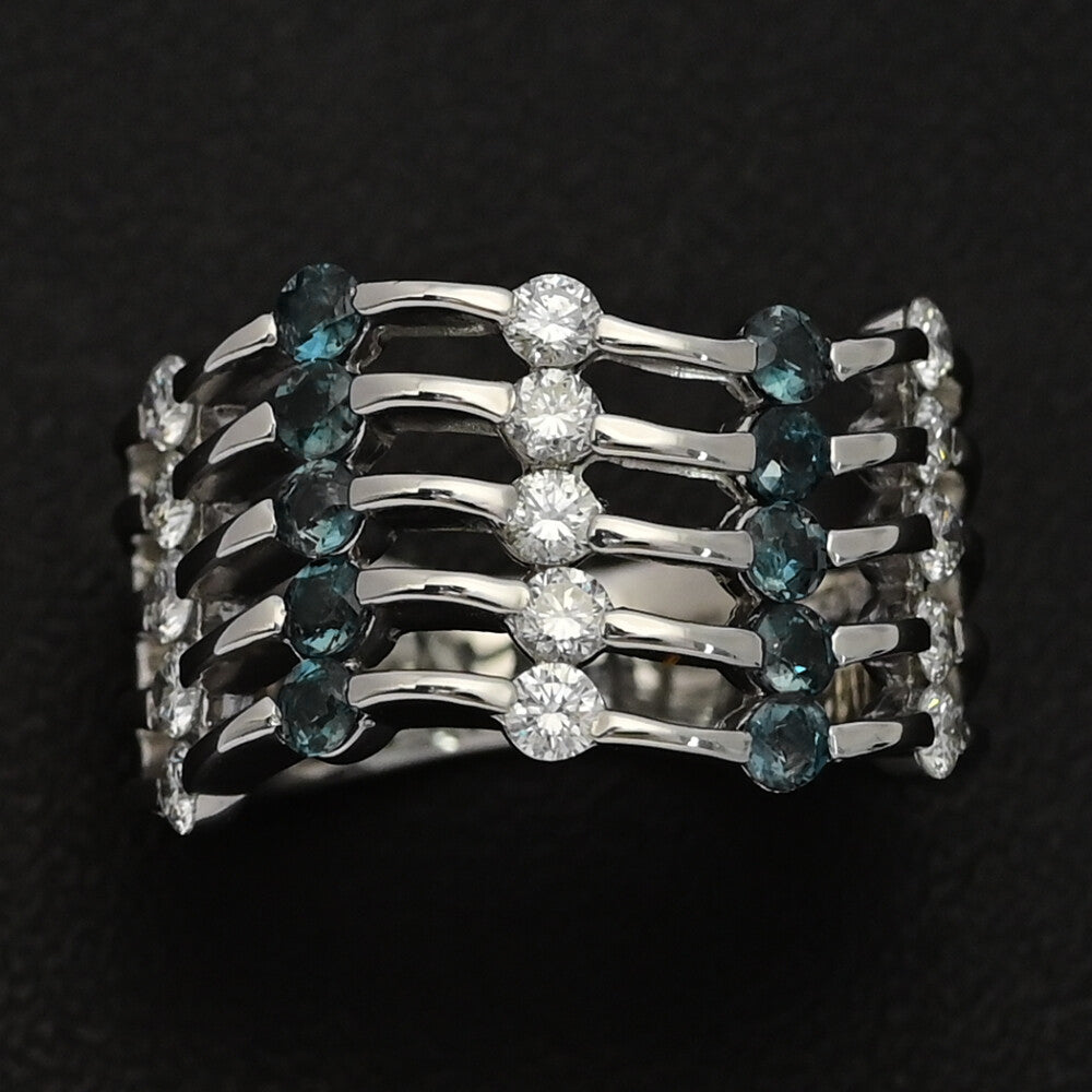 AL0.5ct/FD:0.61ct/5連/五連・アレキサンドライト・ダイヤモンドリング・指輪/Pt900-10.6g/10号/#50/プラチナ 翌日配送可【♀】【N】【レディース】★■591035【中古】
