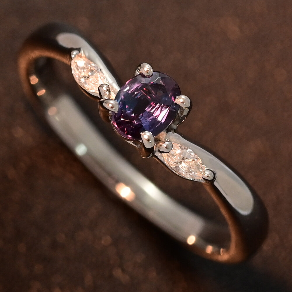 AL0.283ct/FD:0.082ct/アレキサンドライトリング・指輪/Pt900-4.0g/13号/#53/透明青緑褐色 翌日配送可【♀】【N】【レディース】★■591163【中古】