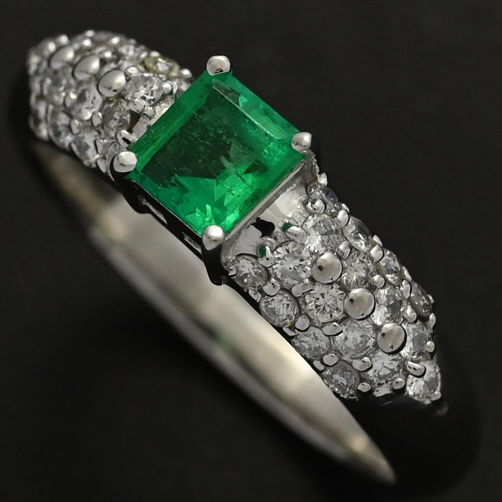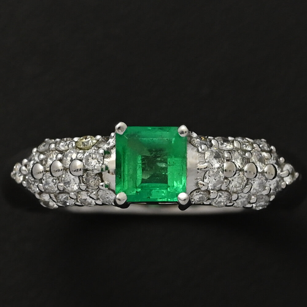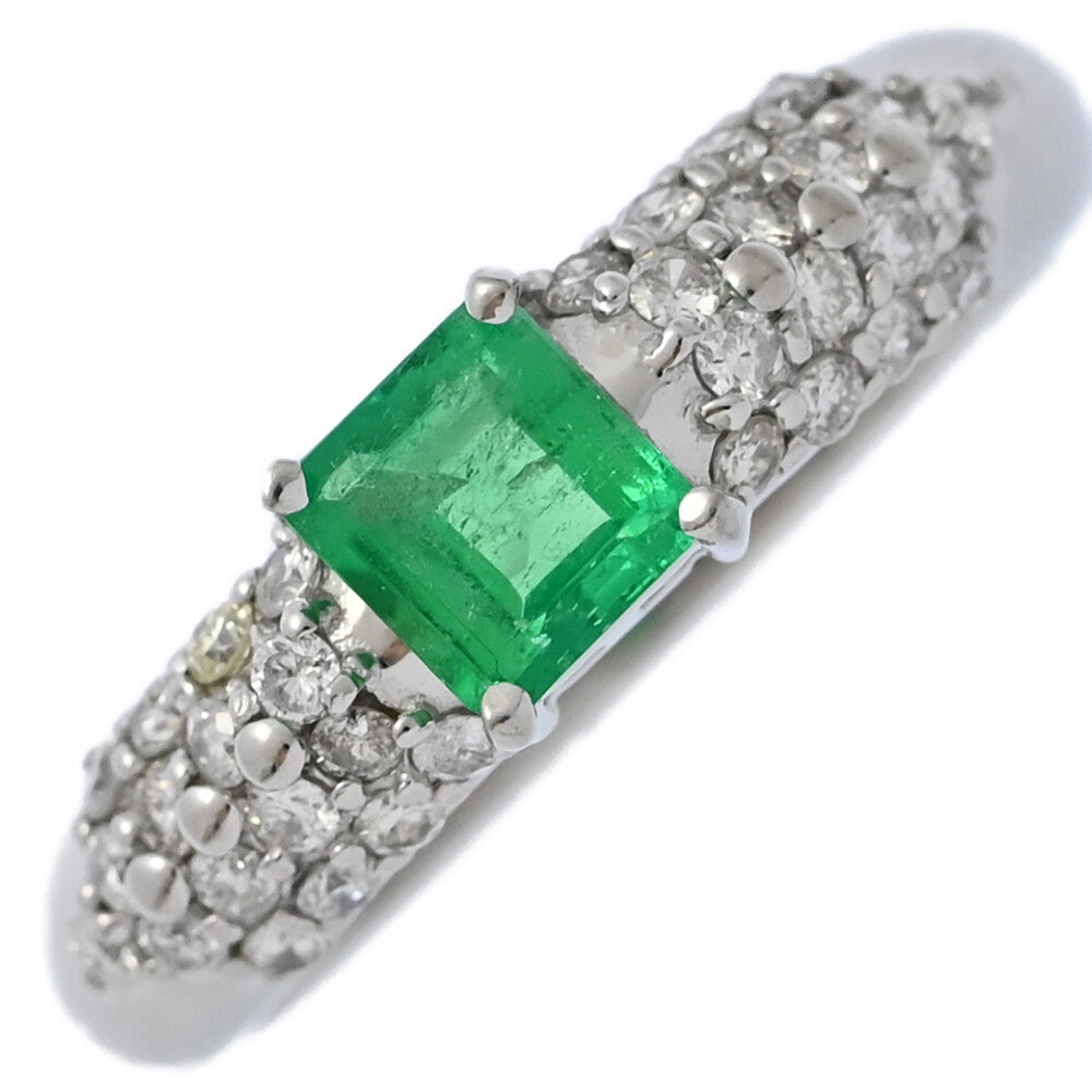 EM0.48ct/FD:0.4ct/ハーフエタニティセッティング・5月誕生石 1P・エメラルド・ダイヤモンドリング・指輪/Pt900-6.1g/15号/#55【♀】【S】【レディース】★■590817【中古】