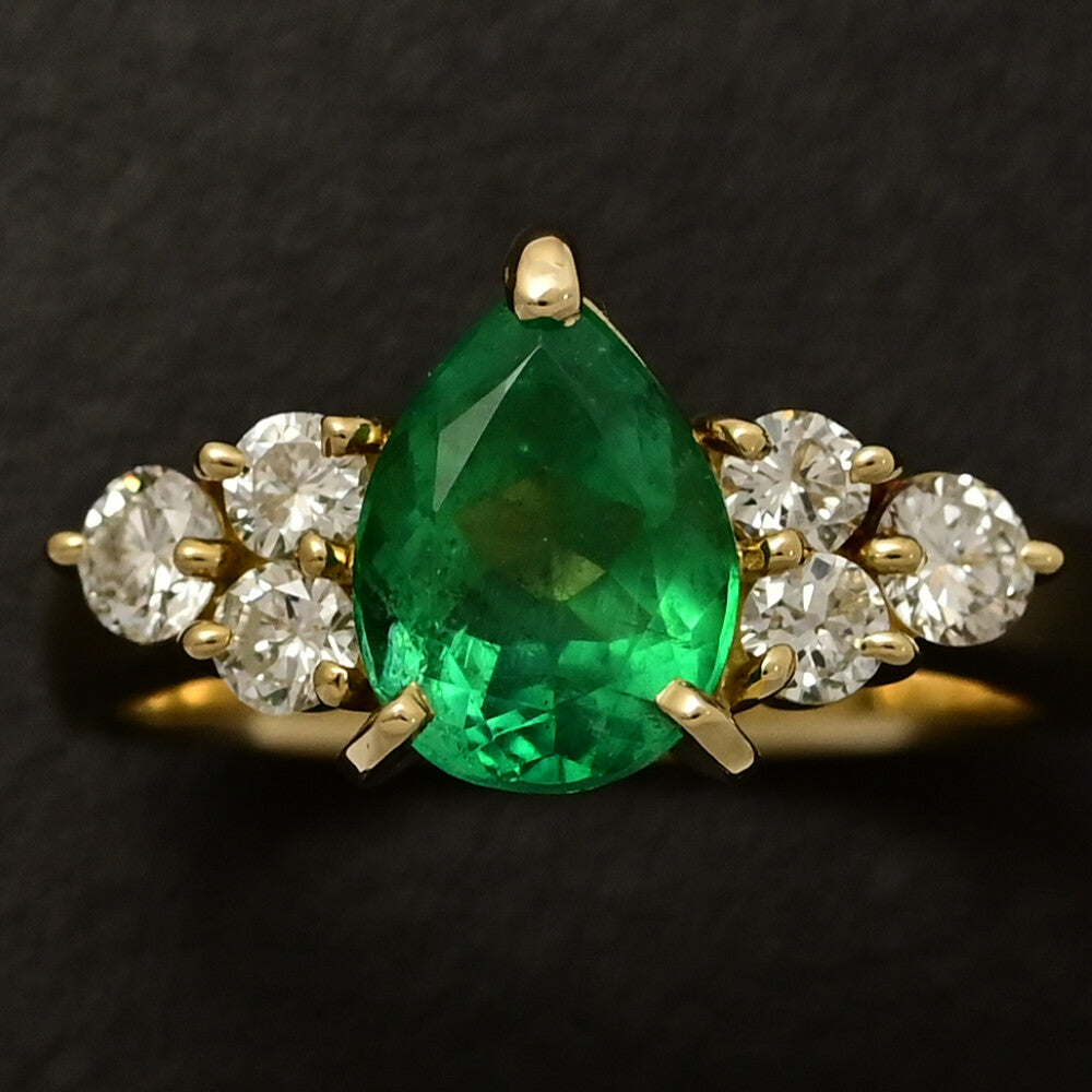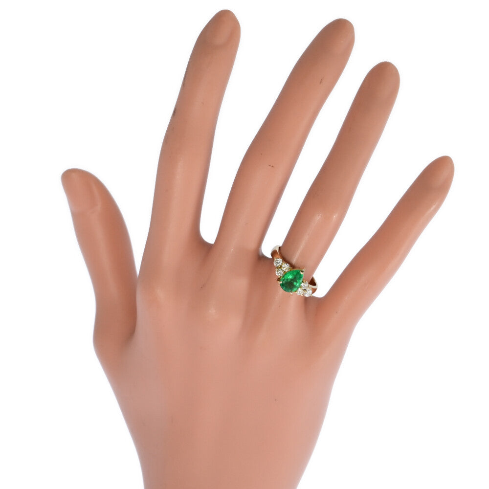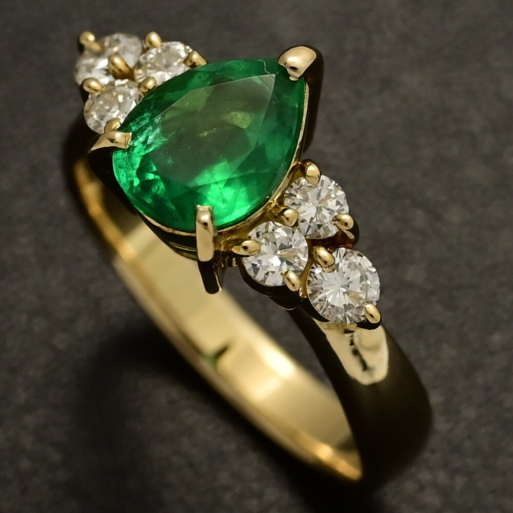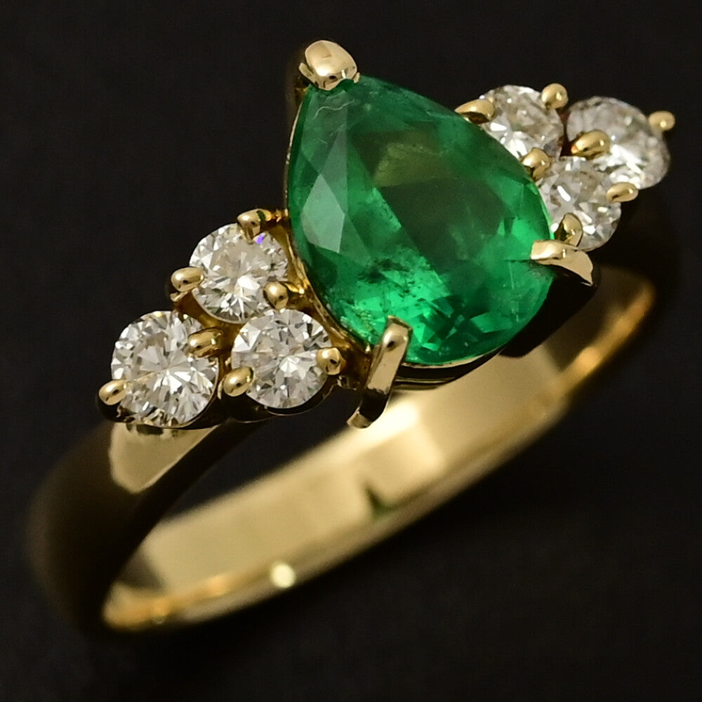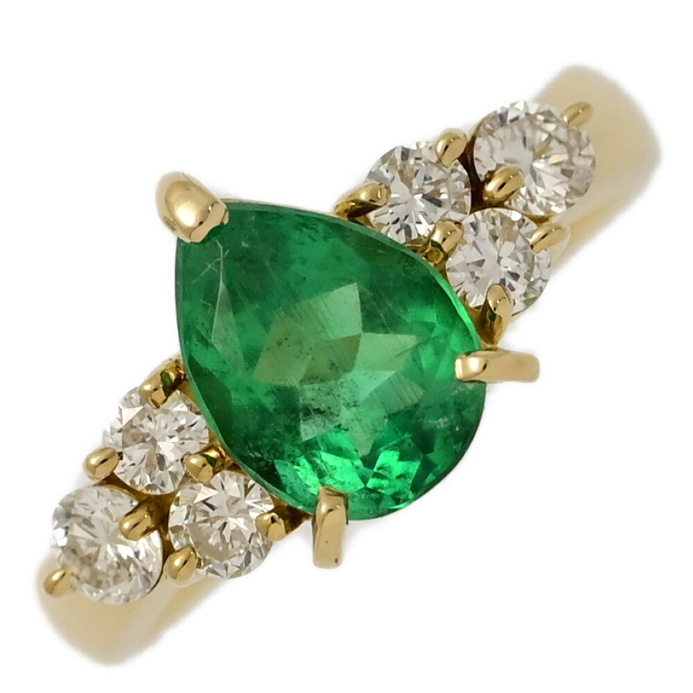 EM1.04ct/FD:0.361ct/ペアシェイプ/エメラルド・ダイヤモンドリング・指輪/K18YG/750-4.4g/10号/#50/イエローゴールド【♀】【S】【レディース】★■594069【中古】